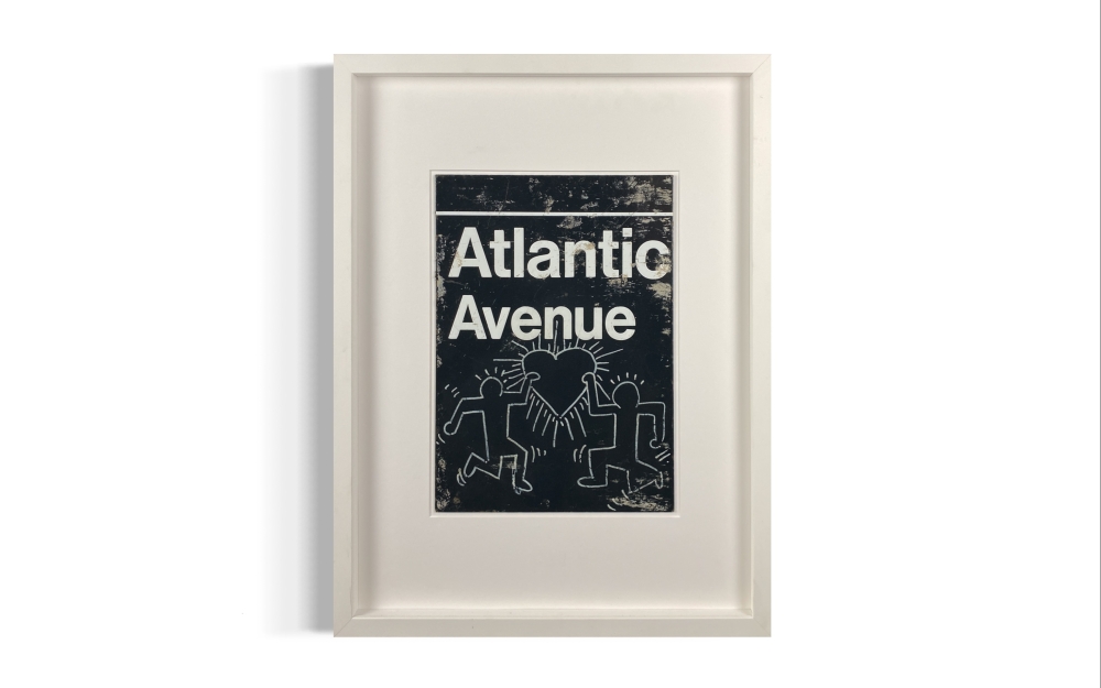 Original drawing on subway sign from the New York subway (ca. 1980) by Keith Haring. Keith Haring made several drawings on both chalk paper and subway signs in the New York Subway. He used the subway as his canvas to make his art accessible to the general public. Professionally framed. Insured shipping and collection possible.