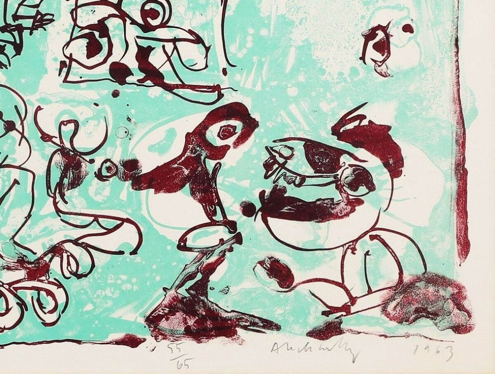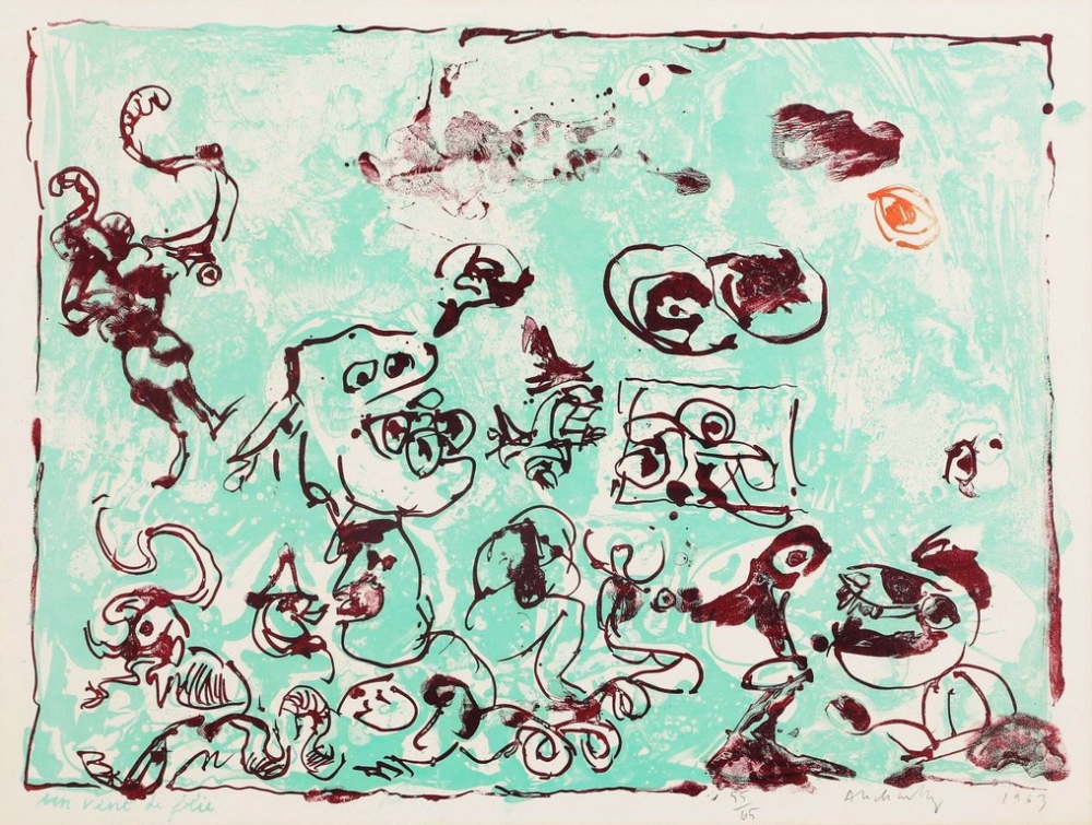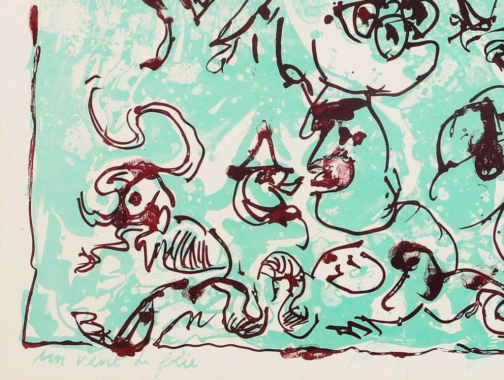 Prachtig, kleurrijke lithografie van Pierre Alechinsky. Vroeg en bijzonder zeldzaam werk uit 1965 (!) Gesigneerd met de hand en genummerd Editie op slechts 65 exemplaren Op BFK Rives Vellum papier, door Imprimerie Beaudet (Paris) Een exemplaar van dit werk is opgenomen in de collectie van het MoMa - New York
