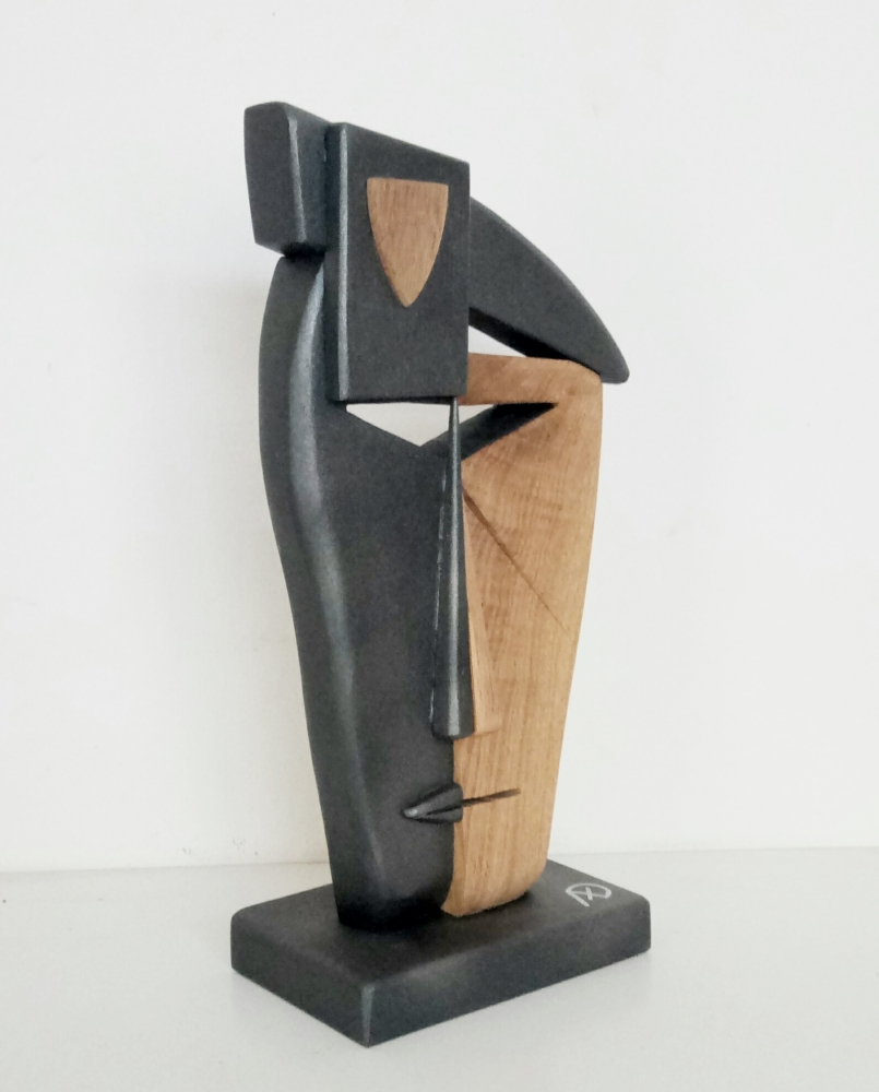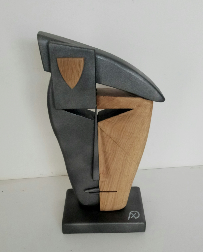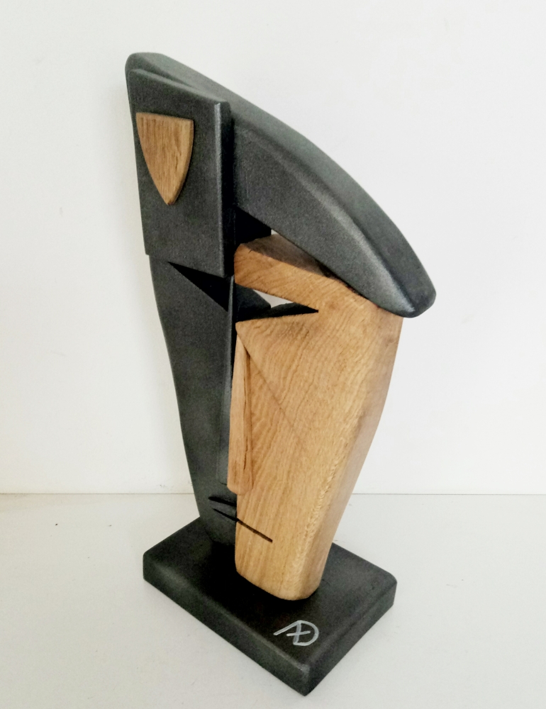 "Legionary" is an artistic sculpture in solid oak wood and metal effect paint; oil finish. The object is a unique piece that creates a unique atmosphere in the environment in which it is placed. From every angle the sculpture takes on a different shape. The work recalls the figure of a soldier, in stylized and geometric shapes. This is a unique piece. Brand A+D art