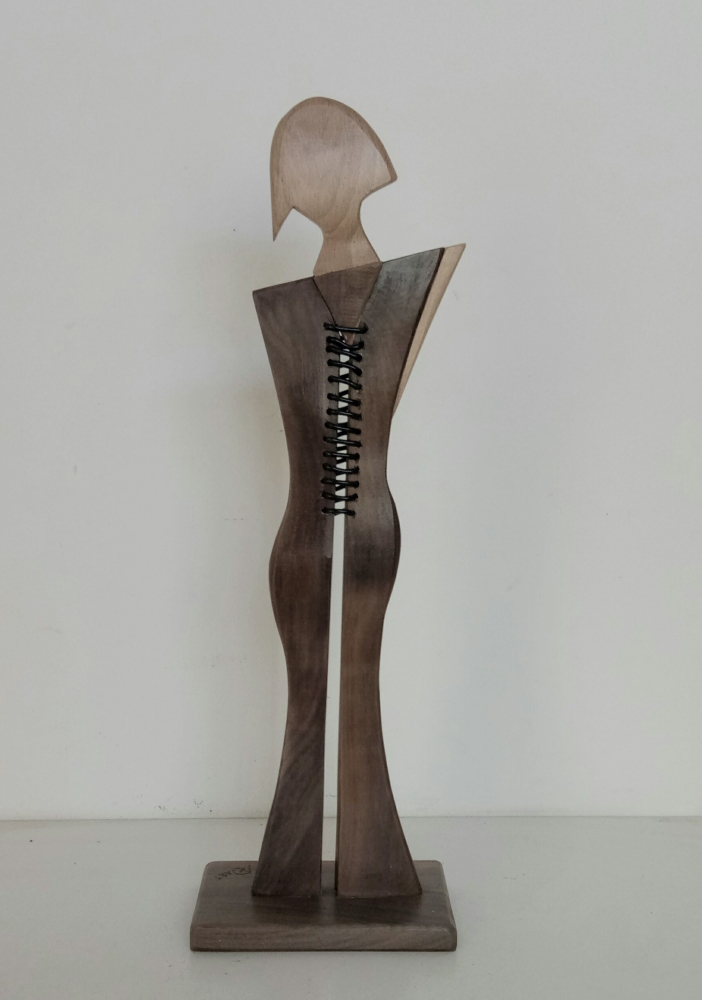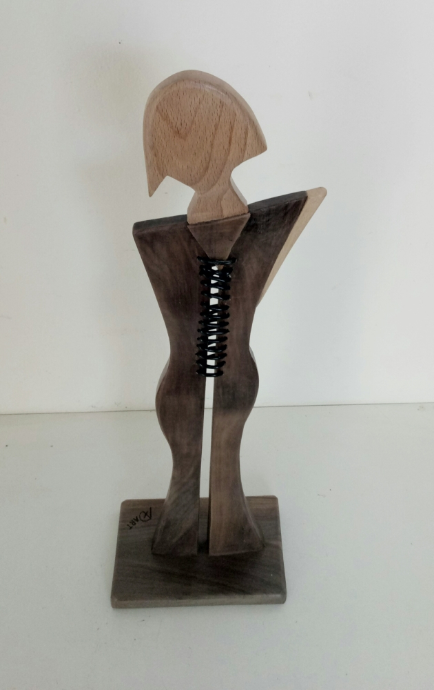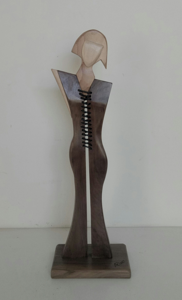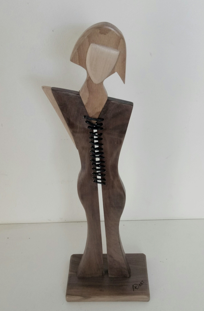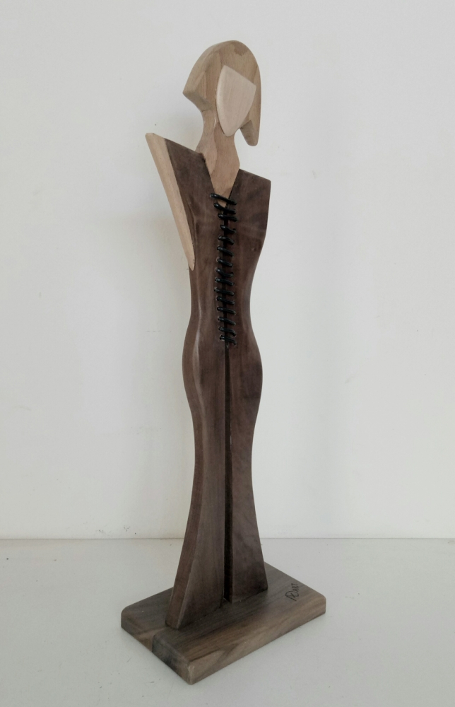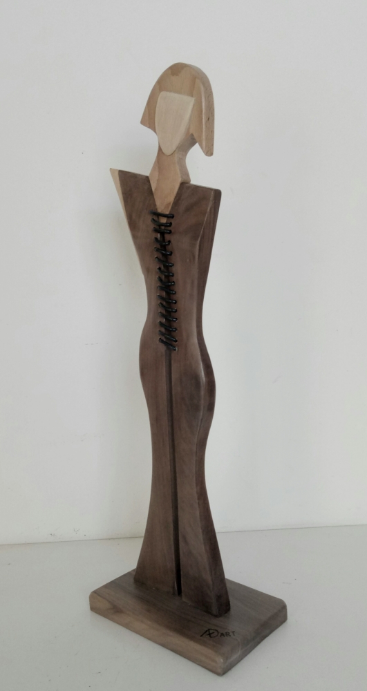 "Lady mystere" is an artistic sculpture in solid walnut wood and beech wood; finish with transparent water-based varnish. It is an object that creates a unique atmosphere in the environment in which it is located and, if illuminated, creates suggestive shadows; it is a unique piece. Brand A + D art