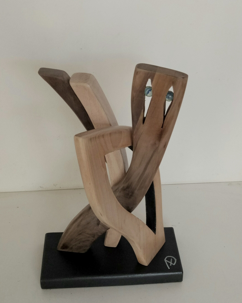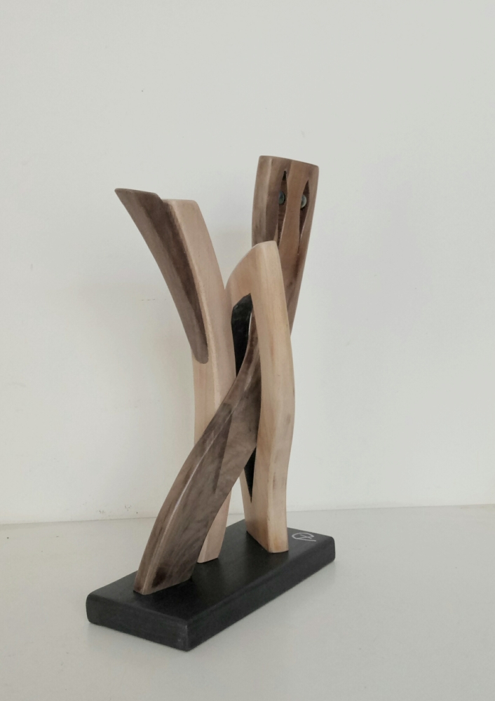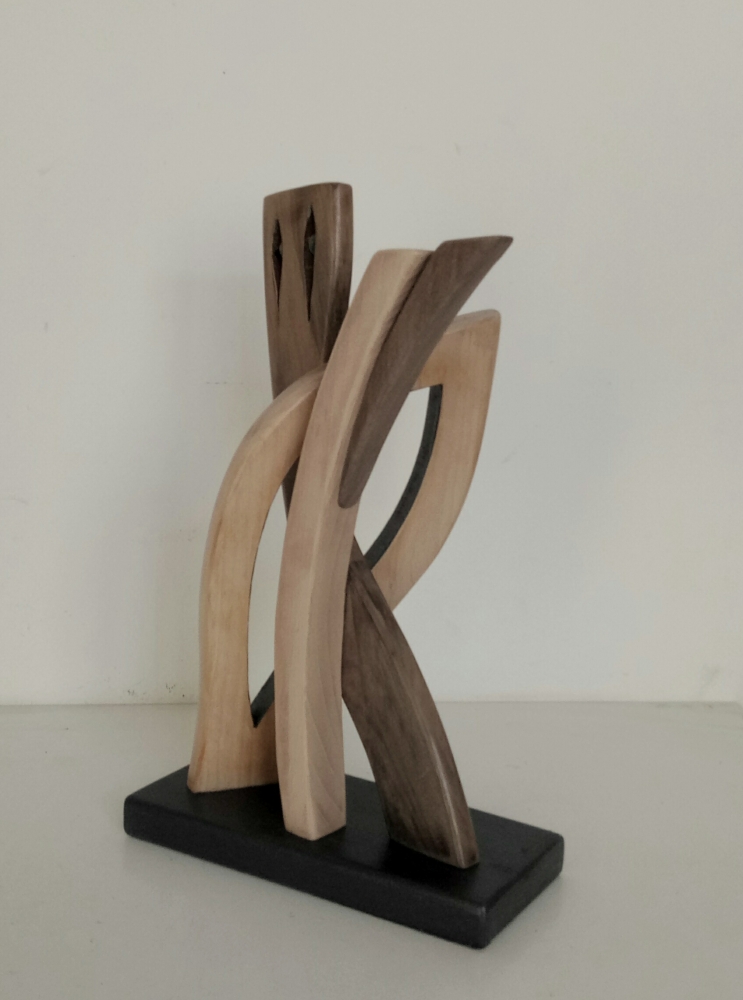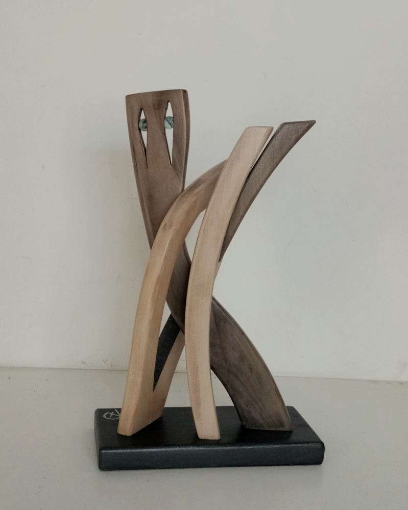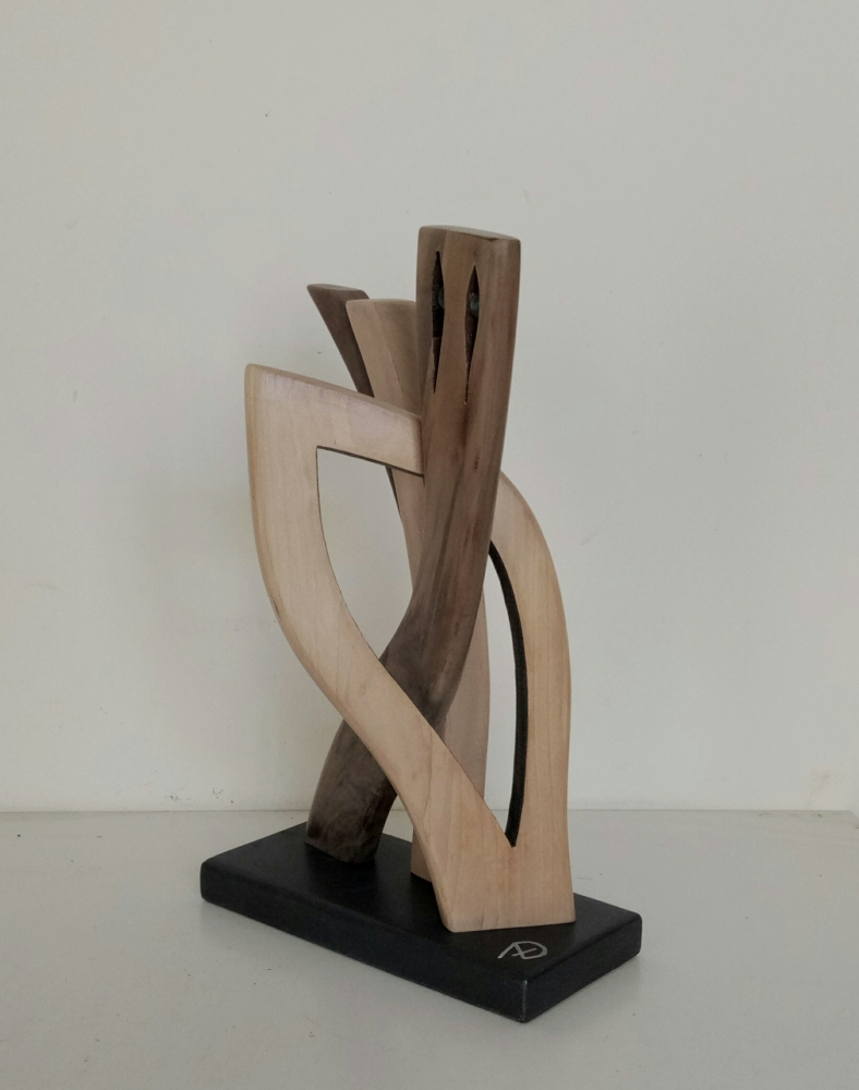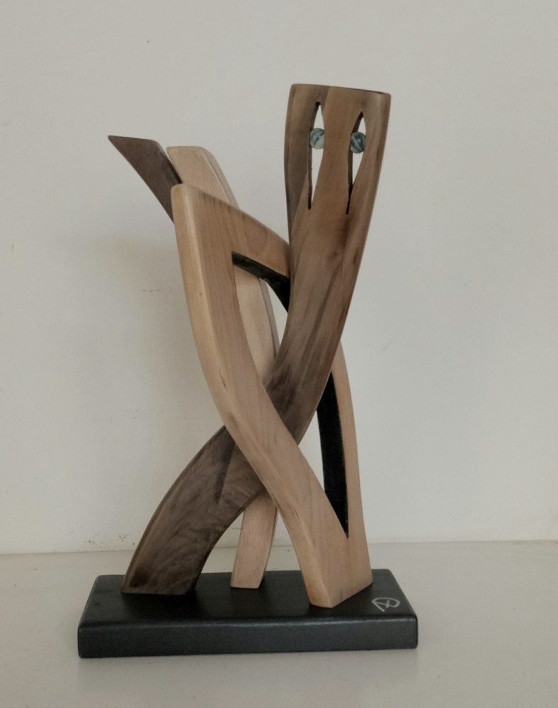 "Influencer" is an artistic sculpture in solid walnut and beech wood; Finish with transparent water-based varnish. It is an object that creates a unique atmosphere in the environment in which it is located and when illuminated creates evocative shadows; it is a unique piece. Brand A + D art