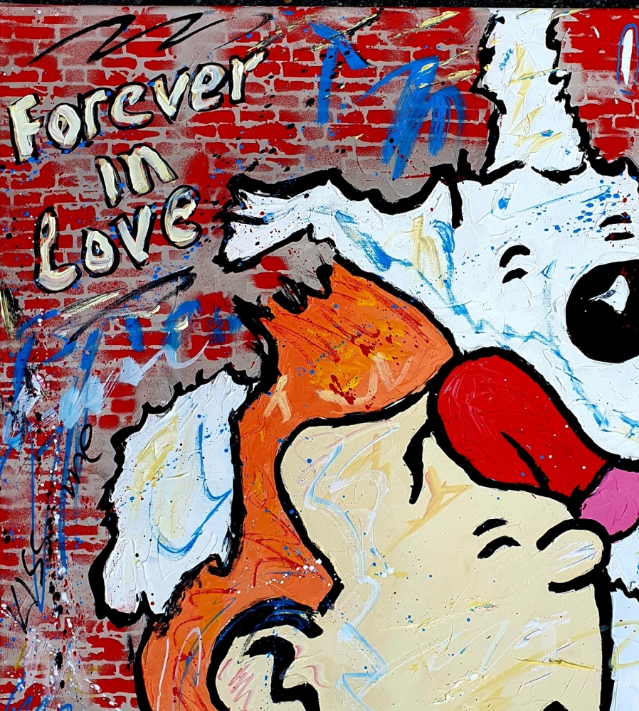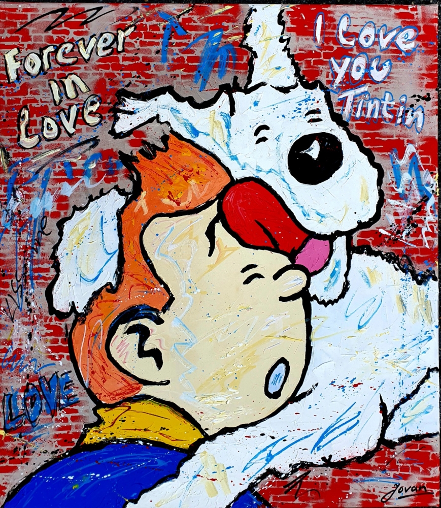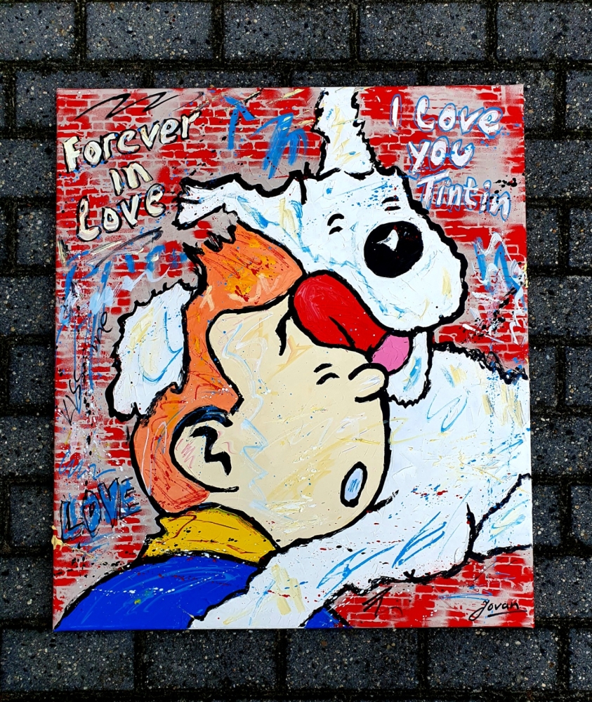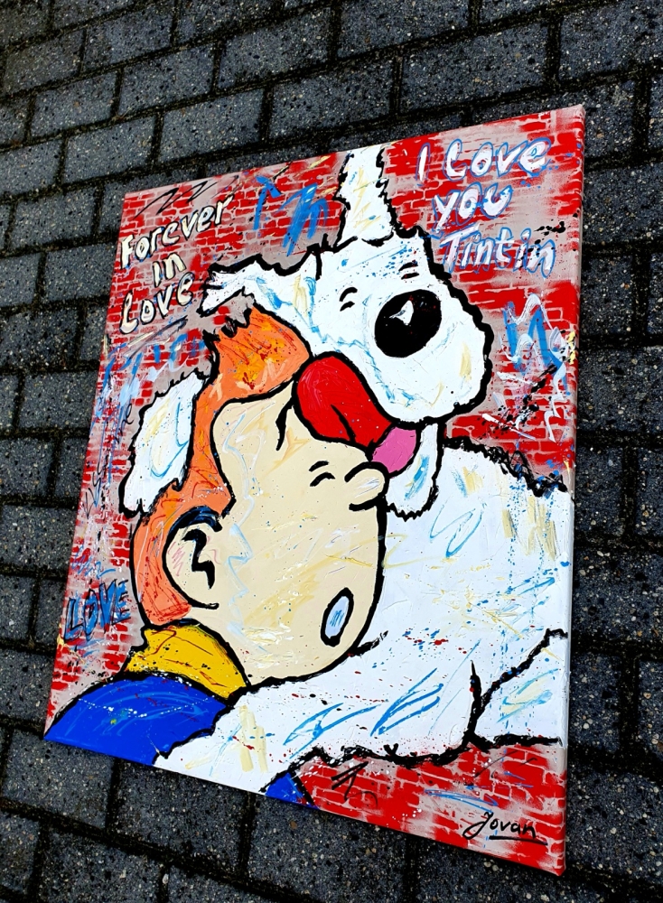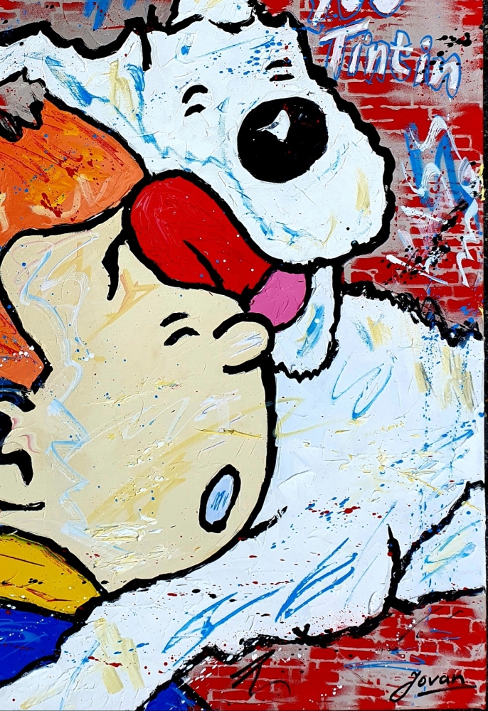 Original unique work, from a series of paintings by Tintin and Snowy in Street / Pop art style, by Dutch professional / contemporary artist Jovan (1962). Work is painted with acrylic paint, palette knife, spray, marker. Painting is hand signed, with certificate of authenticity, is varnished and ready to hang. This work fits well in a modern interior or office space. `` The chaos of ideas that have arisen in my head, the inner energy deprived, wants to come out like a volcano and become an explosion and a symphony of colors on the canvas, framed with matter, figures, faces or abstract composition '' . My work is close to the expressionist style, but I like to experiment with pop art and action painting.