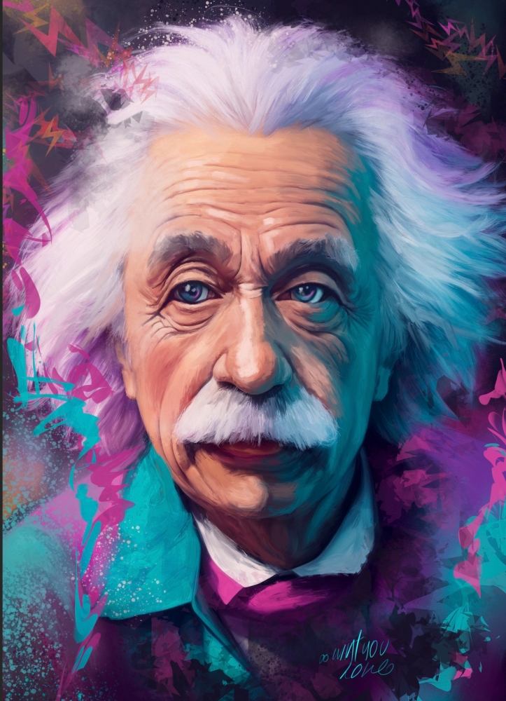 "Einstein's Quantum Reverie" Presenting a remarkable rendition of Oliver's artwork: "Einstein's Quantum Reverie" this exclusive edition exemplifies the artist's exceptional talent and boundless creativity. Painted Digitally and Printed on top-tier paper. Oliver, a passionate artist residing in Portugal, discovered his deep-seated love for Urban art and Illustration from a tender age. Over the years, his artistic journey has unfurled, expanding his skills into various creative realms, including concept art, captivating canvases to immersive 3D renders and digital masterpieces