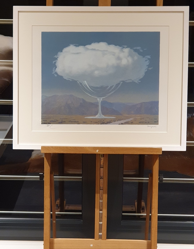 René MAGRITTE La corde sensible Color lithography Signed with name stamp and signature of Charly Herscovici Numbered 91/275 and blind stamp "Succesion Magritte" and blind stamp "ADAGP Paris 2011" Top dimensions (hxw): 60 x 45 cm Frame dimensions: 72 x 58.5 cm Published in Paris in 2011 with the approval and under the control of the ADAGP Paris which manages the Magritte estate and with the signature of its representative Charly Herscovici The painting of the same name dates from 1960. Proof of edition is printed on the back of the lithograph and visible in the new professional framing with frosted glass.