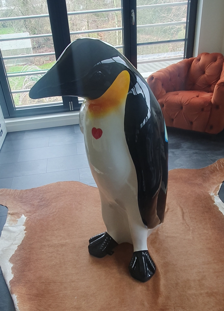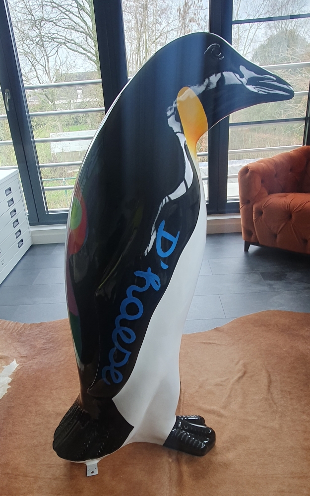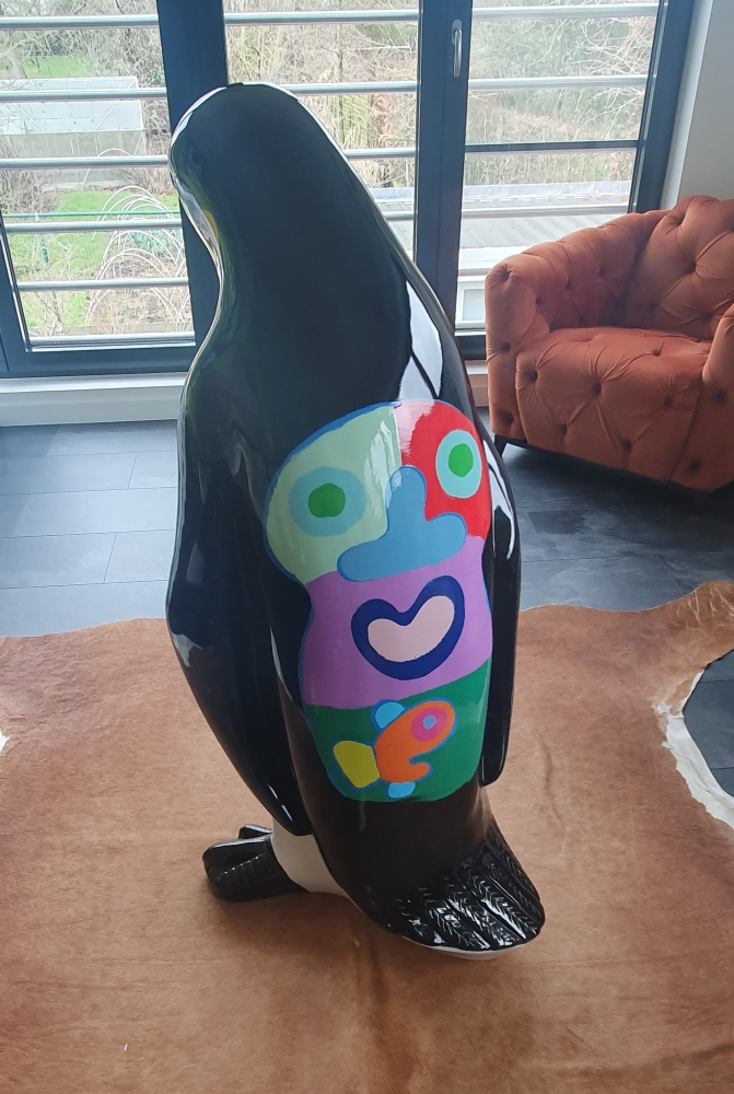 Beautiful large penguin, painted and drawn with paint by Hannes D'Haese. Edition that is not often offered anymore. Beautiful eye-catcher!