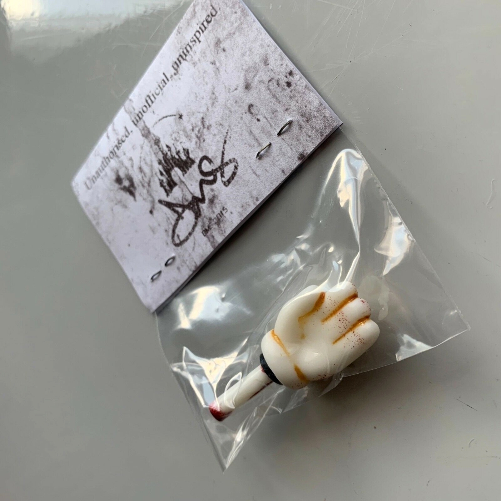 Dismalhand Mickey Mouse Hand - At the opening of Dismaland 2015 - Unopened - w/SeeTicket (#0261) Plastic Art Multiple - 2015. Dismaland was a temporary art project from August to september 2015 organised by street artist Banksy (Attributed). Hand painted plastic mini sculpture of a Mickey Mouse hand. Limited manufactured, size 4 cm. Comes in unopened plastic bag with a paper header. Attributed tot Banksy Photos are part of the description, see pictures to judge by yourself its overall condition. Be safely packaged and sent worldwide by me.