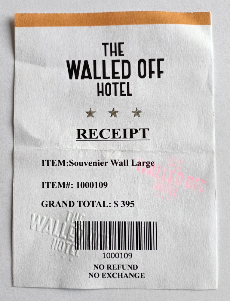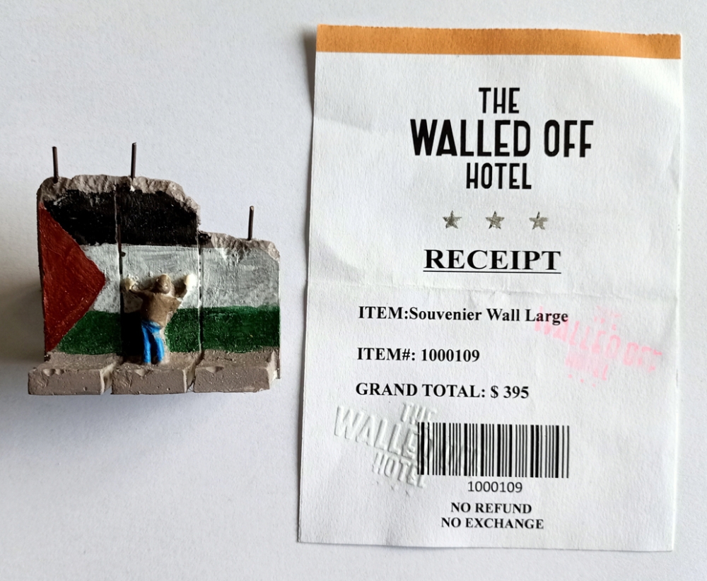 Banksy (Attributed) 'Palestina Flag' Wall Section Sculpture w/Receipt (#0539) Very Rare! Hand painted large souvenir wall sculpture from the Walled Off Hotel Bethlehem Pallestina. Receipt- and Itemnumber #: 1000109. Wall section: 3 panels. Size: 5,5cmx5,5cmx3cm. This piece is - and will be - EXTREMELY collectible, and these wall sections souvenir sculptures are now SOLD OUT. This piece of art was only for sale at the Banksy Hotel in Bethlehem, Palestine and is one of a kind. Only very few pieces of this work of art were made. Comes with Original Matching Numbered Hotel receipt and business card. This work is Attributed to Banksy. Sculpture from The Walled Off Hotel by Banksy are souvenirs conceived and designed by Banksy and made by local artisans. Made in unnumbered limited edition. SOLD OUT!! The Walled Off Hotel is a boutique hotel designed by anonymous London-based artist Banksy alongside other creatives. It is located in Bethlehem, 40 kilometres (25 mi) from Ben Gurion Airport. Established in March 2017, and initially set out to only be a temporary exhibition, the hotel has since attracted nearly 140,000 visitors, thanks in part to its location opposite the portion of the Israeli West Bank Barrier separating Bethlehem from the holy site of Rachel's Tomb. The hotel is considered to be a key piece of social commentary on the Palestinians affected by the Israeli-Palestine Conflict and billed as having "the worst view of any hotel in the world" You can also make a price proposal! Photos are part of the description, see pictures to judge by yourself its overall condition. Be safely packaged and sent worldwide.