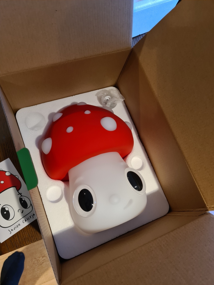 Nightlight Mushroom' by Javier Calleja Afmetingen: 26 cm hoog x 20 cm / 10,24 x 7,8 inch -Oplage van 1500 -Oplaadbare LED-basis met USB-oplader, 3 helderheidsvariaties + aanraakschakelaar -Lichttijd van 8 uur Javier Calleja en CASE STUDYO zetten hun voortdurende reeks samenwerkingen voort en introduceren met trots de volgende vrucht van hun teamwerk: Nightlight Mushroom Lamp. Na een reeks plantenpotten is dit functionele, enigszins interactieve sculpturale stuk een voortzetting van de visie van de kunstenaar om verschillende manieren te vinden om elementen uit zijn kenmerkende universum in het dagelijks leven te integreren. In het recente werk dat uit Calleja's studio in Malaga kwam, was het duidelijk dat de kunstenaar meer geïnteresseerd is in het betreden van de surrealistische sfeer en het veranderen van zijn kenmerkende personages met grote ogen in een soort hybride. Na Pop Top, Top Pot Top en de XL-versie van plantenbakken die een upgrade van origineel werk mogelijk maken met de toevoeging van levende planten, blijft de gevierde Spaanse kunstenaar natuurlijke elementen in zijn werk verwerken. Zowel als een manier om zijn universum verder uit te breiden als als een voorstel om onze relatie met de natuur te heroverwegen, worden deze releases onderstreept met een speels gevoel voor poëzie dat de praktijk van Calleja doordringt. Eerste editie Gepubliceerd door: Case Studyo Gepubliceerd op: 05-10-2023 Nummer in oplage: 1500