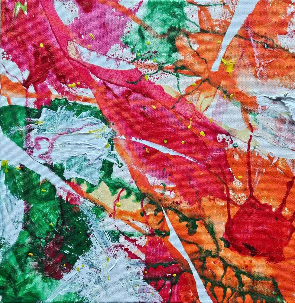 Acryl op doek Origineel werk Gecreëerd tijdens de ORKA ontmoetingsdag "Een dag om in te kaderen" op zaterdag 25 februari in Sint-Martens-Latem door kunstenares Nele Vanheel (mama van Lola, cfr. signatuur). Waar Nele Vanheel normaliter mensen wil verbinden met werkt met pastel en performance art, experimenteert ze hier voor het eerst met een nieuwe techniek. Daar gingen kinderen en jongeren die leven met reuma (en hun broers & zussen en soms ook de ouders) aan de slag met het team van LukiArt (kunst op maat van het zieke kind) om een reeks originele kunstwerken te maken. Een aantal van hen kozen ervoor om de werken in te brengen in deze veiling om de werking van Orka vzw te steunen.