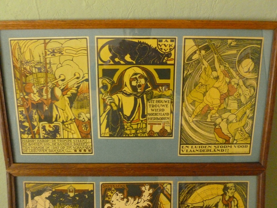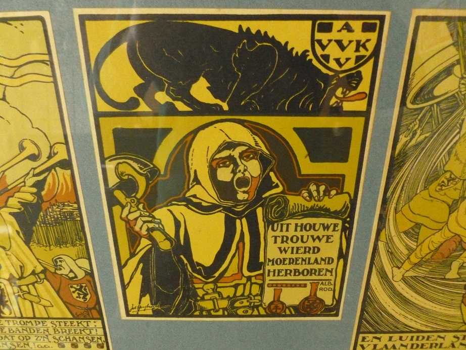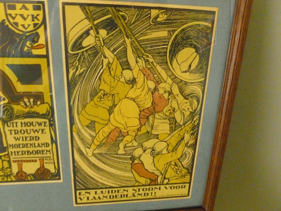 Aangeboden twee kaders met originele gravures van Jos Speybrouck (1891-1951).Was actief als schilder,tekenaar en illustrator.Zijn stijl was relatief verfijnd.Is de auteur van hel wat Vlaamsnationalistische en religieus geinspireerde werken vol theatrale symboliek,deze zes orignele gravures zijn hiervan voorbeelden.Zijn elk getiteld,gehandtekend en gedateerd in de plaat. Zitten nog in de originele kaders en zijn in prima conditie.Afmeting kaders 36 op 66 cm.Afmetingen etsen 5 maal 19 op 29 cm en 1 maal 19 op 24 cm.Ophalen geen probleem.Verzenden in overleg maar ten laste van de koper.Buitenkans voor de liefhebbers van het genre.Soms weerkaatsing van licht op glas te zien.