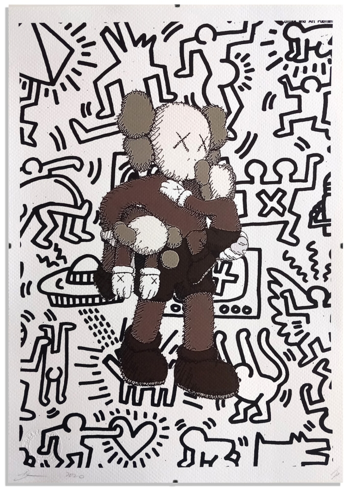 Serigraphy on 300 gr Fine Art paper. Signed and dated 2020 by the artist with relief stamp. Edition: AP. Framed in clip frame with clear plexiglass and an MDF back wall. 45 x 32 cm (17,7" x 12,6") Supplied with COA and gold adhesive seal from Death NYC. Details serigraphy: Kaws Family - Keith Haring Famous Figures Death NYC is the nickname of a New York street artist and an acronym for "Don't Easily Abandon The Hope". Her work is based on the derivation of images and artworks from popular culture.