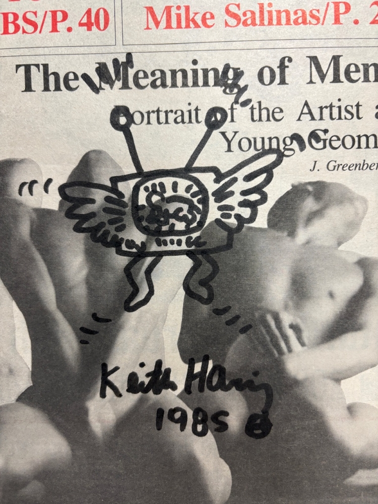 Original drawing on Native Magazine by American pop art artist Keith Haring. The work was also signed and dated next to the drawing. Technique: Pen on paper. Insured shipping and collection possible.