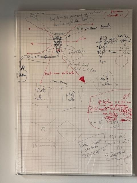 Beautiful lithography from the folder Thermo photovoltaic energy converter by Panamarenko from 2001. Signed and numbered on 100 copies + 25 Roman numbered. This work bears the number Q and is signed by hand. This eye-catcher is framed in a plexibox.