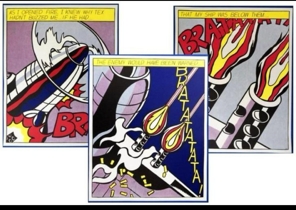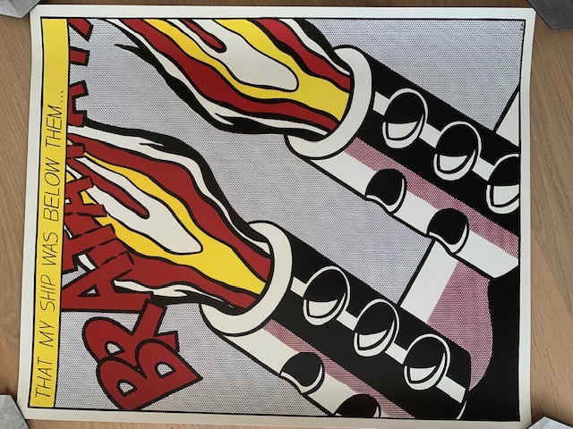 Unieke triptiek door Roy Lichtenstein uitgegeven door het Stedelijk Museum, Amsterdam. Triptiek Roy Lichtenstein was een Amerikaanse popartiest. In de jaren zestig werd hij, samen met onder andere Andy Warhol, Jasper Johns en James Rosenquist, een leidende figuur in de nieuwe kunstbeweging. Zijn werk definieerde het uitgangspunt van pop-art door middel van parodie. De afmetingen zijn: 59 x 49 cm elk. Totaal 3 stuks. Alle 3 in perfecte staat!