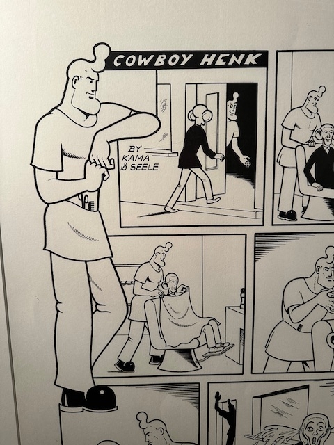 Prachtige stifttekening van Herr Seele. Onderaan gesigneerd. Mooi ingelijst Cowboy Henk is een Belgische stripreeks, getekend door Herr Seele en geschreven door Kamagurka. Het is een absurde stripreeks die oorspronkelijk in de krant De Morgen liep, maar later door het blad Humo werd overgenomen. De serie werd van 1981 tot 2011 onafgebroken gepubliceerd.