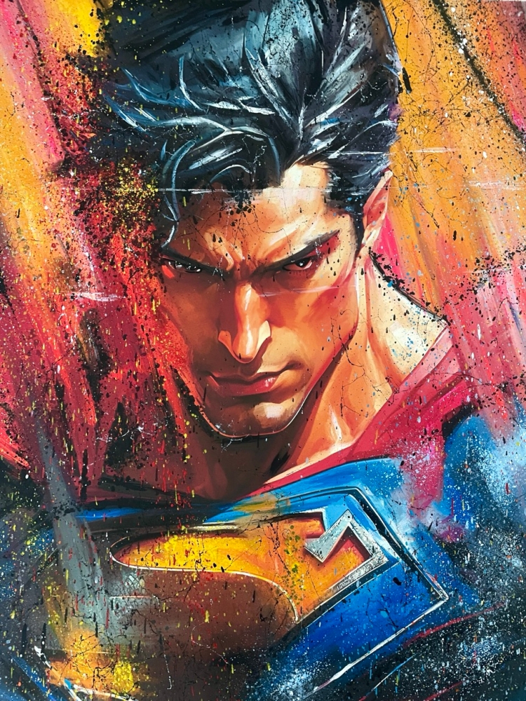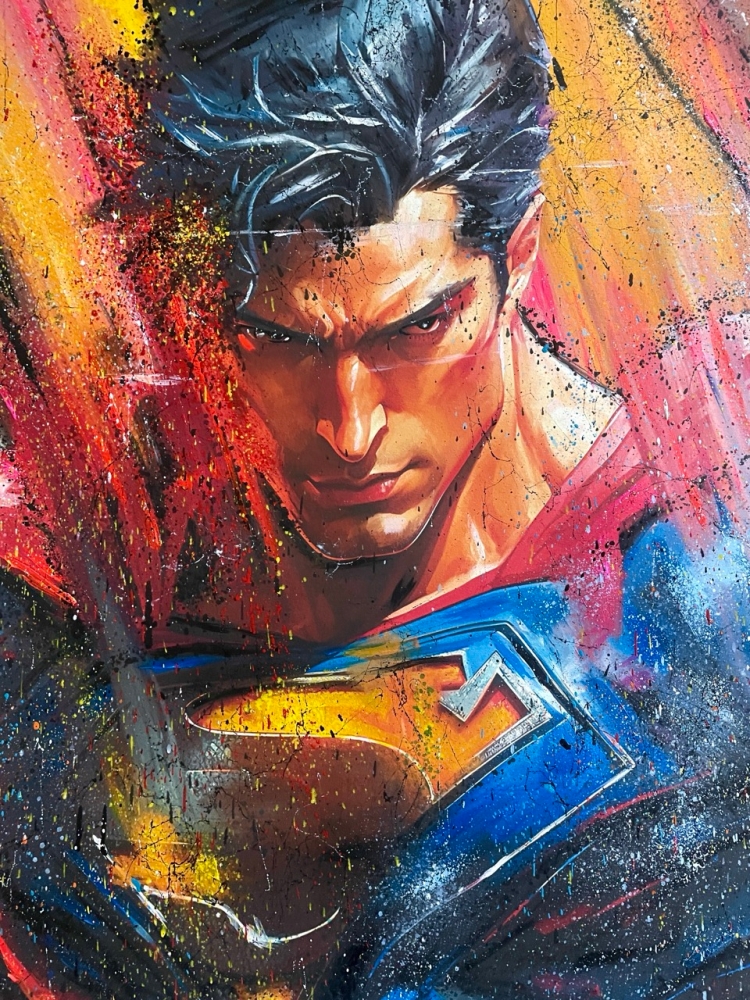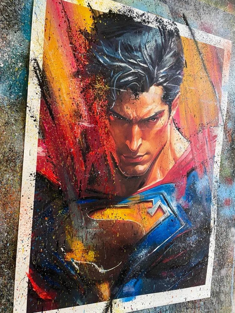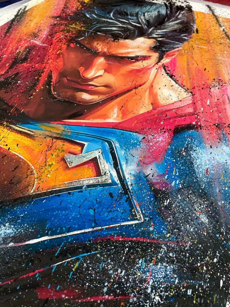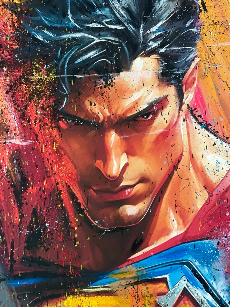 "Superman" Presenting a remarkable rendition of Oliver's artwork: "Superman" this exclusive edition exemplifies the artist's exceptional talent and boundless creativity. This is a original, one of a kind piece, it's a mixed media artwork (spray on Paper, gliceé, acrylic on paper) Oliver, a passionate artist residing in Portugal, discovered his deep-seated love for Urban art and Illustration from a tender age. Over the years, his artistic journey has unfurled, expanding his skills into various creative realms, including concept art, 3D renders and digital masterpieces to captivating canvases and mixed media artworks.