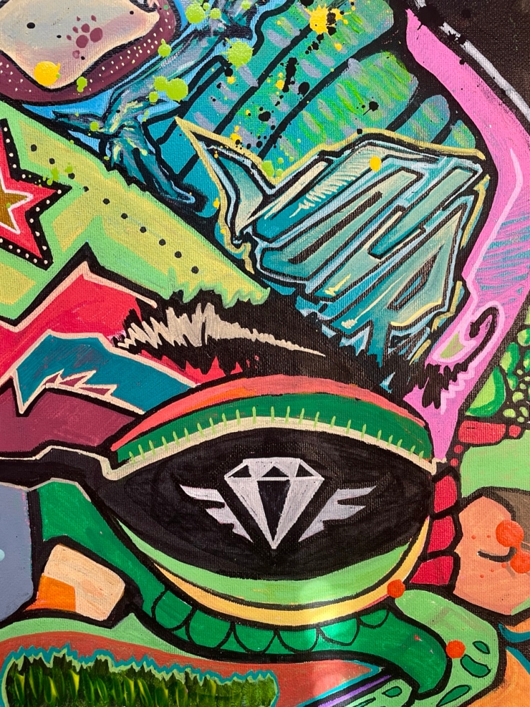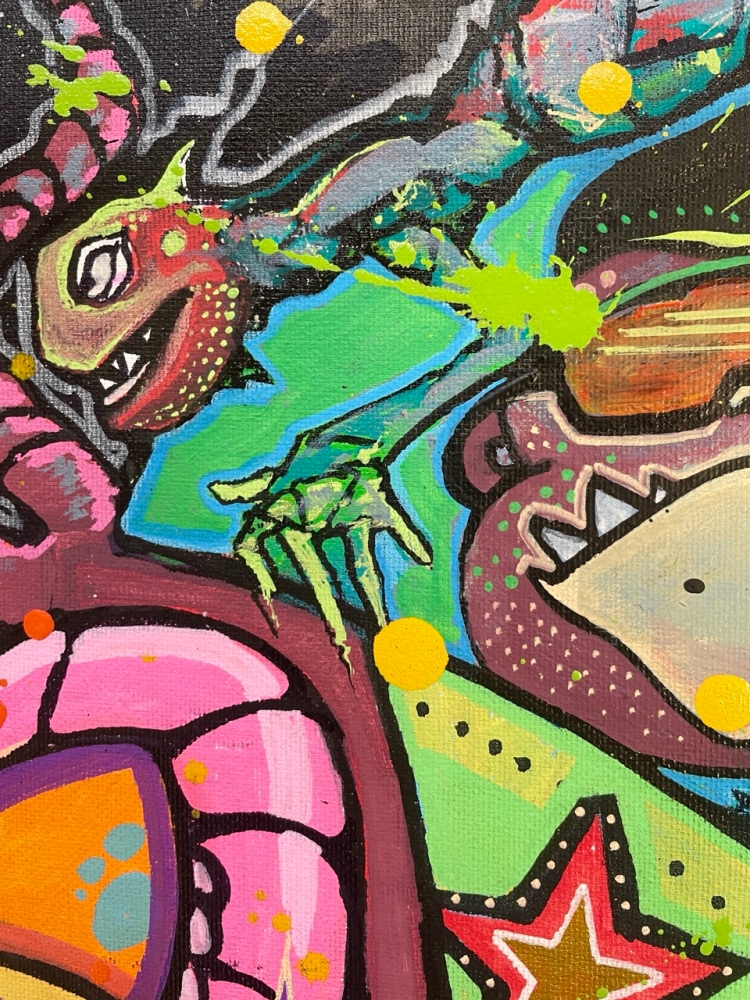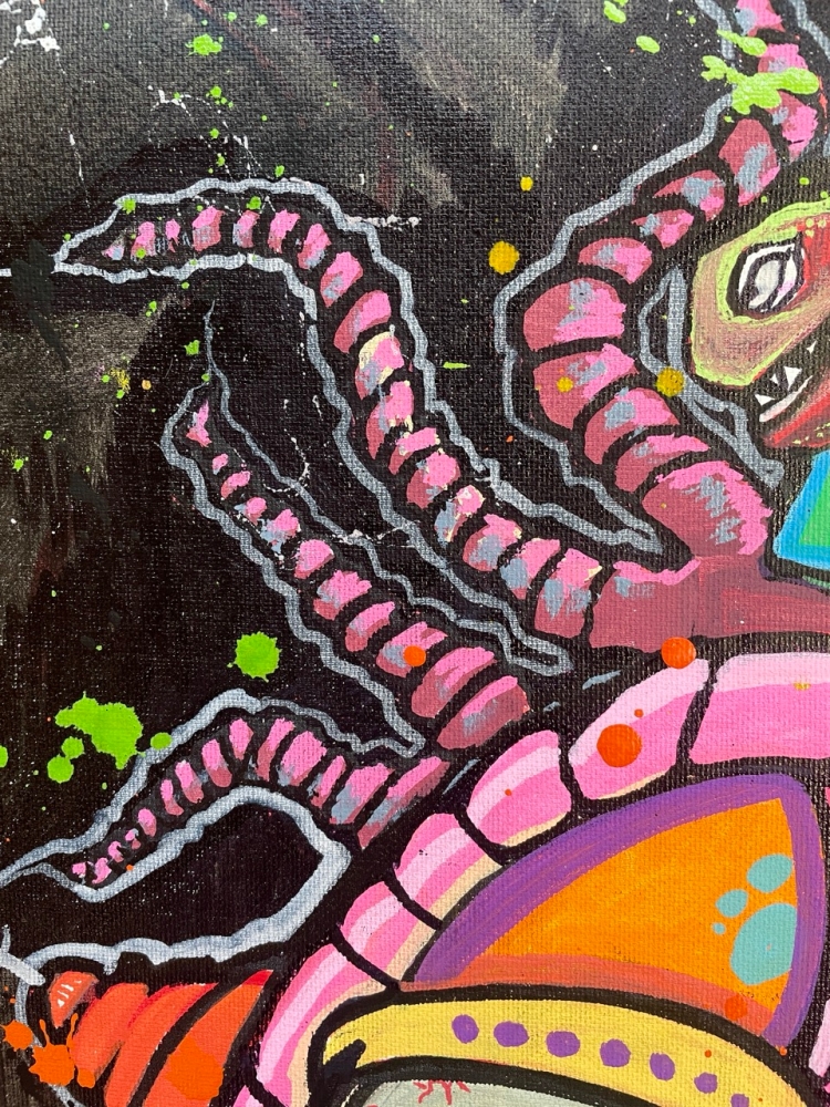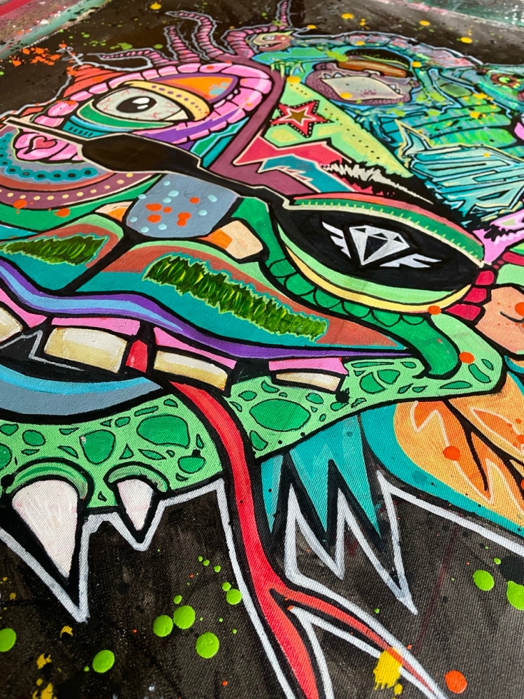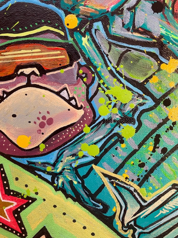 "Dentigladius" Introducing an exceptional interpretation of this Oliver piece, this artwork is a mixed media on canvas titled: "Dentigladius". This exclusive edition highlights the artist's passion In every stroke, Oliver's work reflects his unwavering commitment to the art form. This is a unique work of art, hand-signed and with a certificate of authenticity, delivered to your door. -This is a Mixed Media Artwork on canvas. -Sent rolled in a tube. -Oliver has 2 different signatures, one of them is "Noir" as you can see in this artwork Oliver, a passionate artist residing in Portugal, discovered his deep-seated love for Urban art and Illustration from a tender age. Over the years, his artistic journey has unfurled, expanding his skills into various creative realms, including concept art, 3D renders and digital masterpieces to captivating canvases and mixed media artworks.