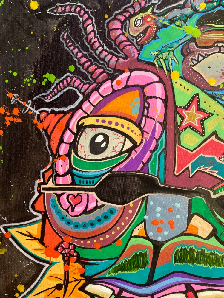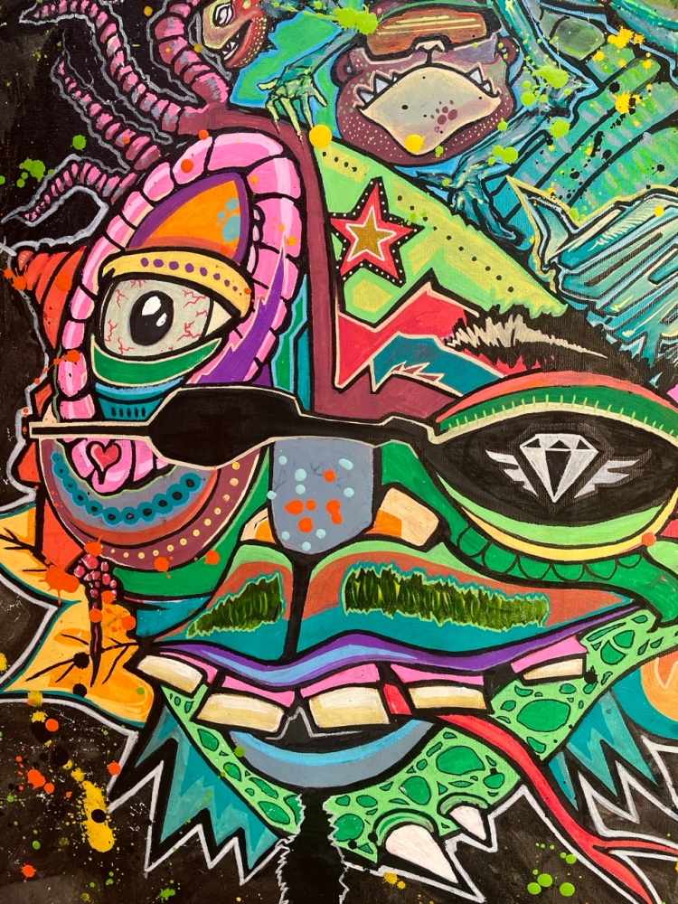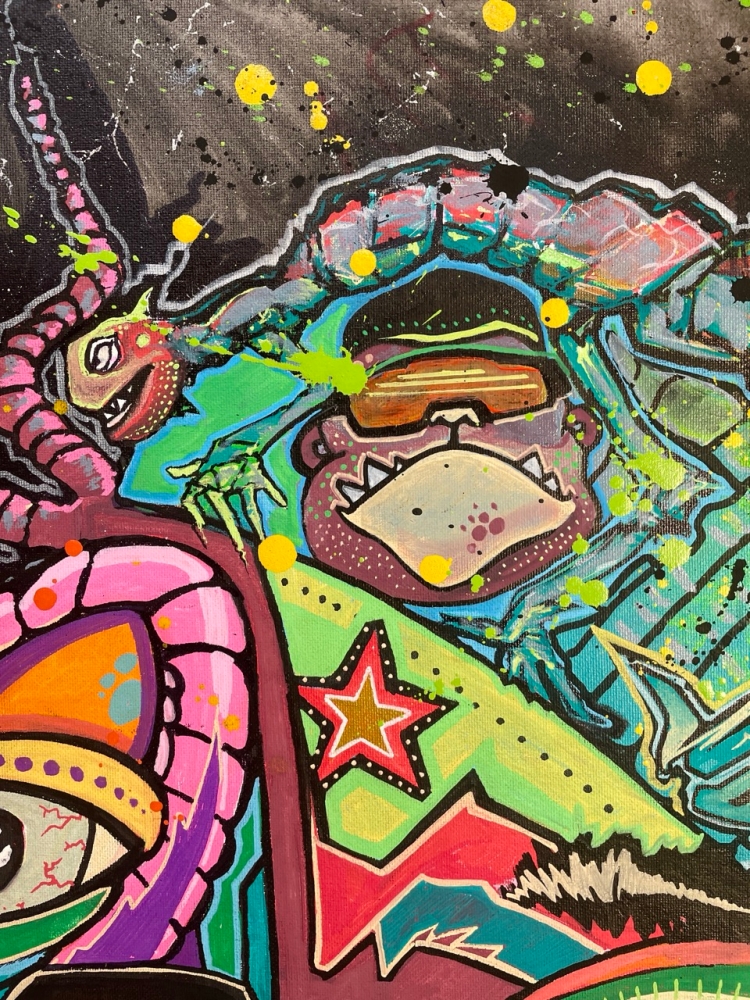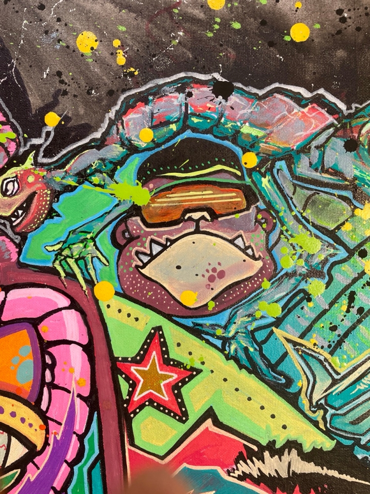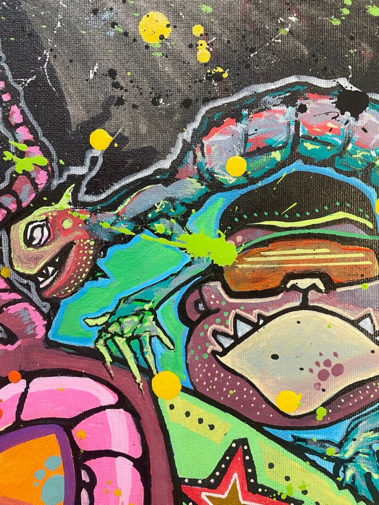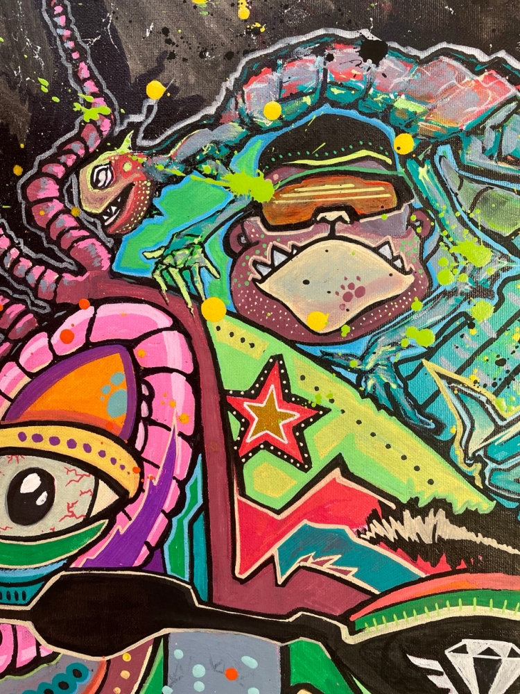 "Dentigladius" Introducing an exceptional interpretation of this Oliver piece, this artwork is a mixed media on canvas titled: "Dentigladius". This exclusive edition highlights the artist's passion In every stroke, Oliver's work reflects his unwavering commitment to the art form. This is a unique work of art, hand-signed and with a certificate of authenticity, delivered to your door. -This is a Mixed Media Artwork on canvas. -Sent rolled in a tube. -Oliver has 2 different signatures, one of them is "Noir" as you can see in this artwork Oliver, a passionate artist residing in Portugal, discovered his deep-seated love for Urban art and Illustration from a tender age. Over the years, his artistic journey has unfurled, expanding his skills into various creative realms, including concept art, 3D renders and digital masterpieces to captivating canvases and mixed media artworks.