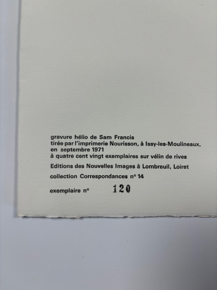 Authentic heliogravure from 1971 by Sam Francis limited to 420 copies. This is copy number 120. Extremely rare and in perfect condition. Insured shipping and collection possible.