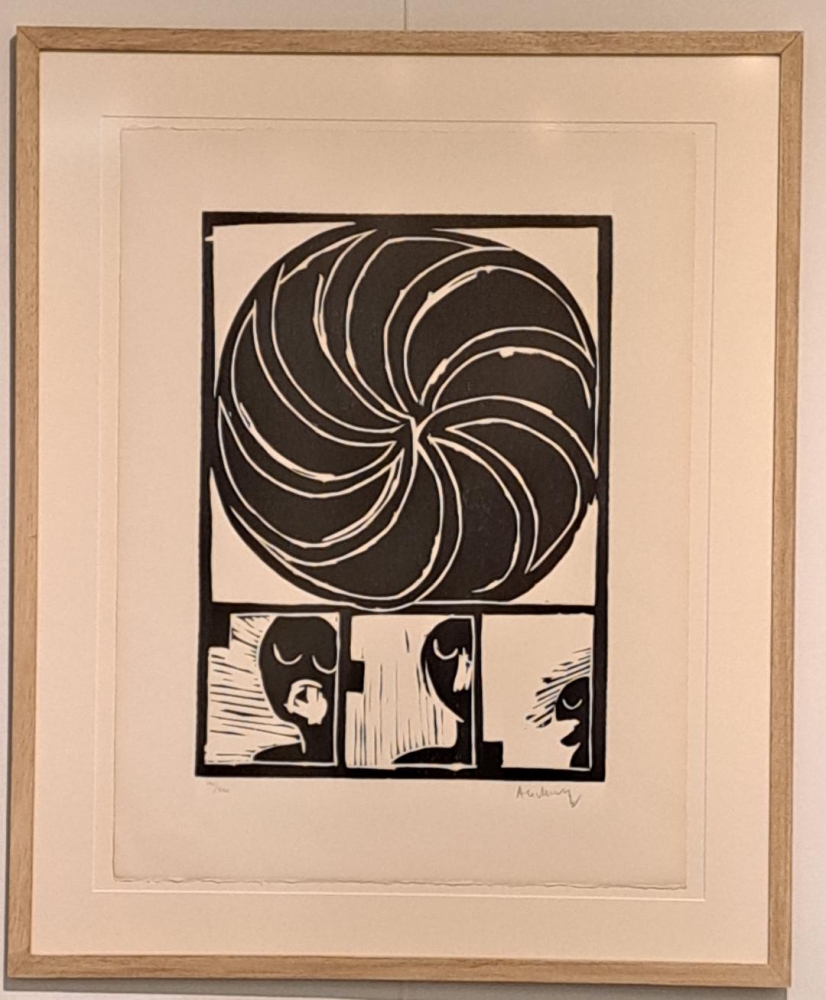 large black and white woodcut by Pierre Alechinsky from 1973 signed and numbered in pencil, no. 140/300 professionally framed, floating in passepartout with natural wood frame and frosted glass work dimensions (hxw): 65x50cm frame dimensions: 84x68cm Pierre Alechinsky (1927 Schaerbeek) is the last living member of the cobra group (including Asger Jorn, Karel Appel, Christian Dotremont, Constant, Corneille and Jacques Doucet)!