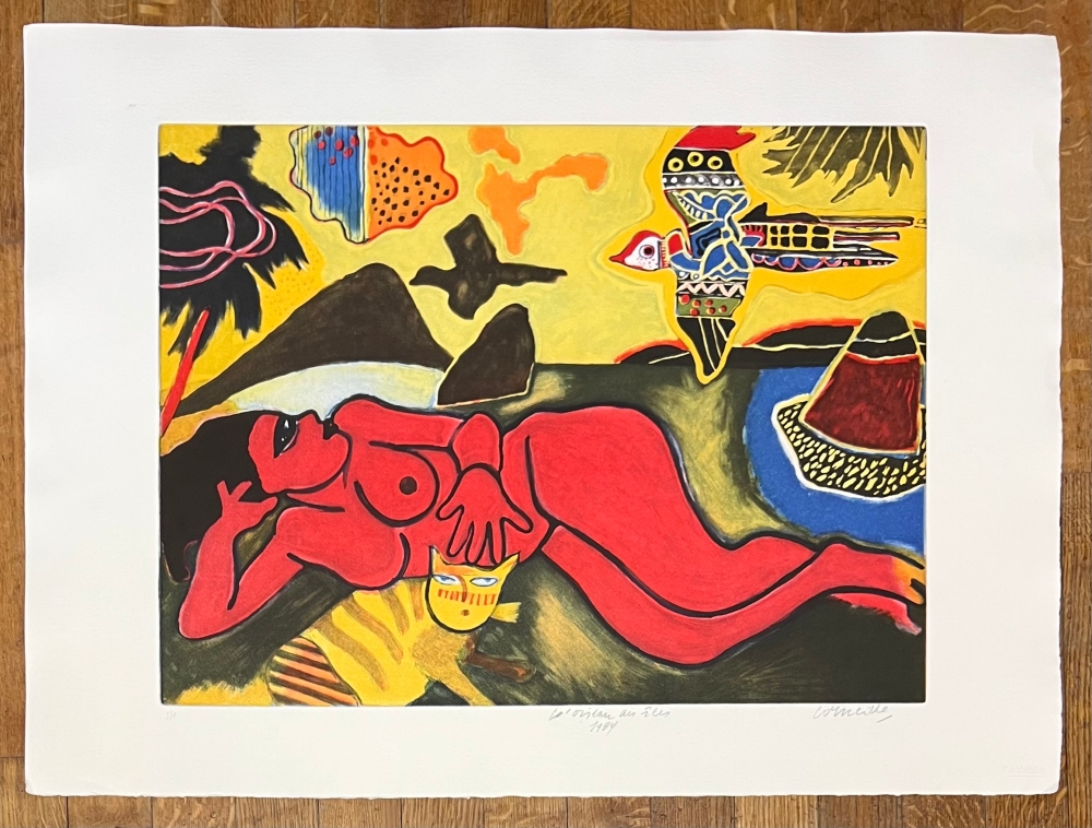 Beautiful work inviting us to travel and escape, signed, titled and dated by Guillaume Corneille in graphite. 59.5 x 80.5 cm Artist's copy S/Z with Atelier Corneille stamp on the back Etching in 7 colours - Dry stamp and certificate on the back from the printing studio: Prospettive d'Arte, Milano.