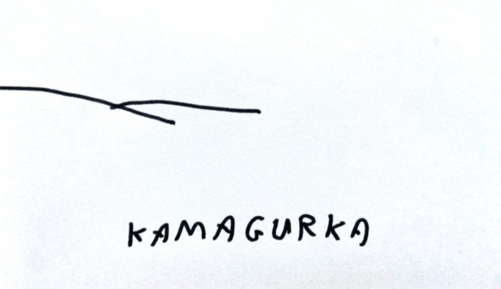 Kamagurka, pseudoniem van Luc Charles Zeebroek, is een Belgisch cartoonist, theater- en televisiemaker, zanger en allround kunstenaar. Kamagurka staat bekend om zijn absurde cartoons en tv. Tekening in inkt en kleurstift op glad, kreukgevoelig papier.