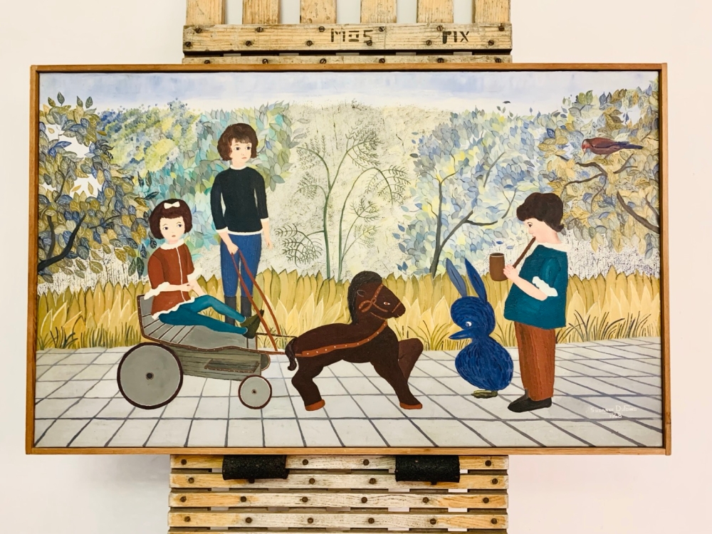 This is the work of Suzanne Dufoing, a Belgian female writer who passed away in 2019. Her works mainly express fairytale-like works with fantastic, dreamlike colors with children as their theme. This is a work that clearly captures the tone and manner the author seeks to pursue. Among her many works, it is rare to find such large-scale works in other auctions. Each character and material are expressed differently with delicate brush strokes.