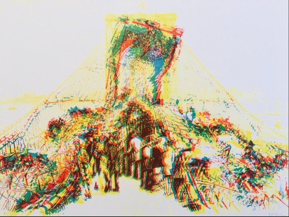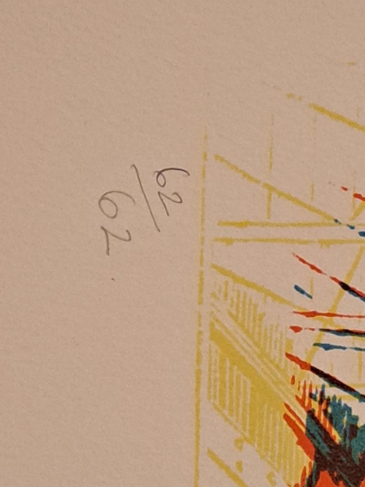 Pol BURY Brooklyn Bridge, New York cinezitation 1966 Originele zeefdruk, met potlood gesigneerd door de kunstenaar, genummerd Afmetingen: 44,5 x 61 cm Uitgave Lefevre Gallery, New York Oplage: 62 exemplaren Uitstekende staat