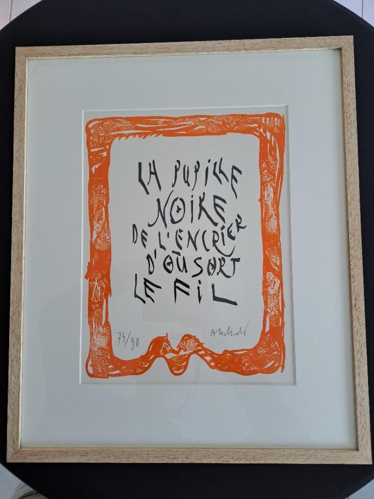 Color lithograph from the mots series by Pierre Alechinsky issued in 2007 in 90 copies. numbered and signed in pencil. No. 74/90 is offered top dimensions (hxw) 37x28 cm frame dimensions (hxw) 55x45.5 cm Pierre Alechinsky (1927 Schaerbeek) is the last living member of the cobra group (including Asger Jorn, Karel Appel, Christian Dotremont, Constant, Corneille and Jacques Doucet)!