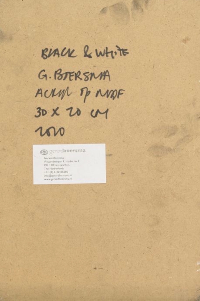 Prachtig werk van de Nederlandse kunstenaar Gerard Boersma -Black and white. Het werk is gelaakt met acrylverf op mdf plaat en meet 30 x 20 cm. Het werk is van 2020 en is op de keerzijde handgesigneerd en gedateerd. Met certificaat