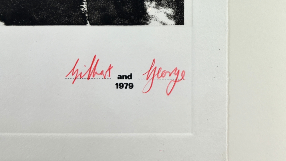 Gesigneerde fotogravure editie door Gilbert & George. Deze is nummer 8 van de 15 gemaakte artist proofs. Hand gesigneerd en genummerd door de kunstenaars. Deze prent maakt ook onderdeel uit van de collectie MoMa New York. Verzekerde verzending alsook ophalen mogelijk.