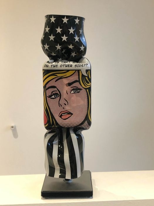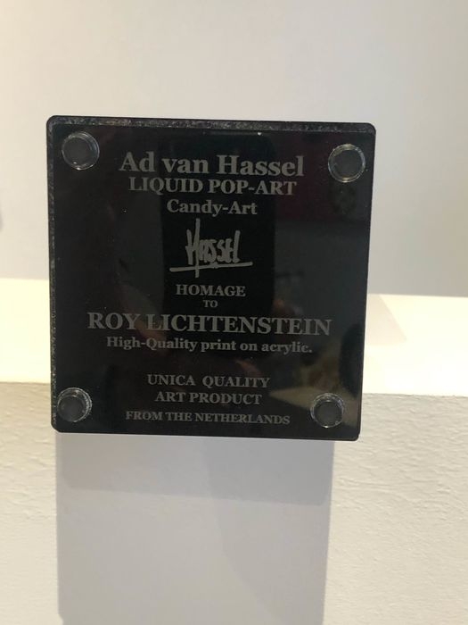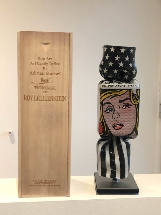 POP ART-CANDY made by the famous Dutch artist Ad van Hassel. Laser cut and oven-folded perpex. Standing model on luxurious silver-colored metal base in wooden box. Dimensions high 33 cm including pedestal. Engraved signature on the bottom of the ART CANDY