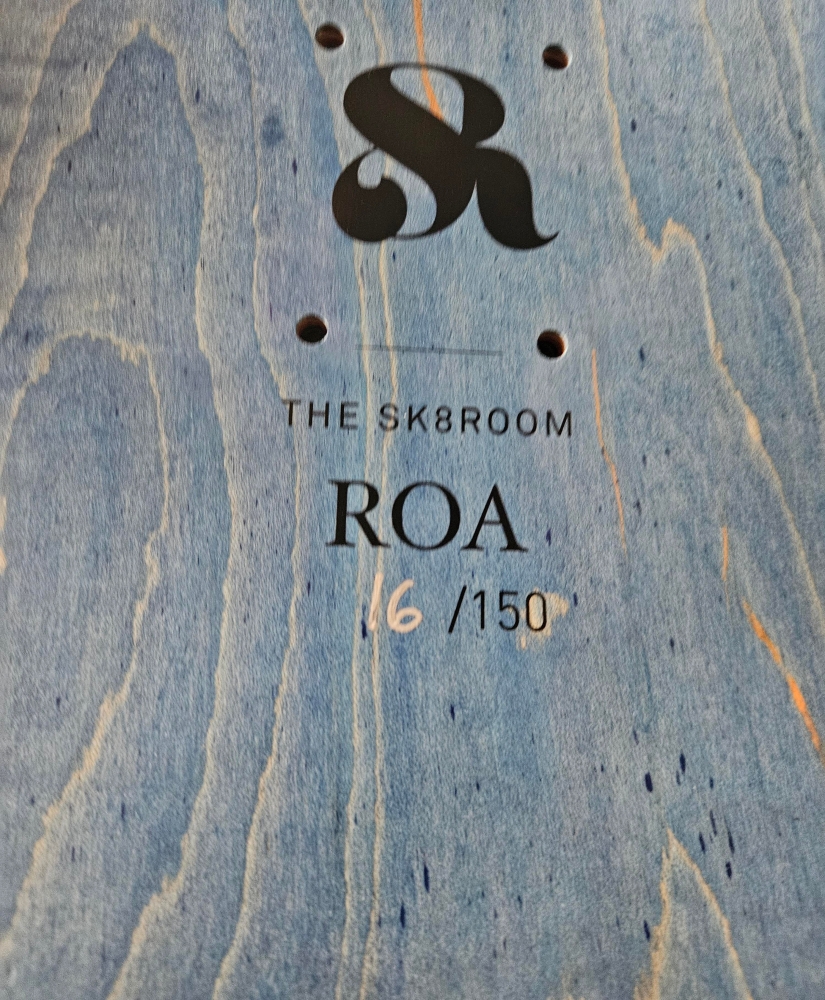 Limited Edition of 150 (number 1-25 signed / number 26- 150 not signed) The item offered is SIGNED (rare!) Produced and numbered by THE SKATEROOM in 2012 Made of 7 ply Grade A Canadian Maple wood ROAs Decay series represents a cornerstone in the artists work as his obsession with animals leads him to explore the anatomy of his creatures, as well as the biological process of decomposition, very much like a modern day da Vinci. Belgian-born street artist ROA is a muralist and artist renowned for his giant black and white animals that can be found in every major cities of the world. ROA was recently selected to feature in Art in the Streets, the first exhibition dedicated to graffiti and street art at the MOCA, which brought together the top 50 street artists of all times.