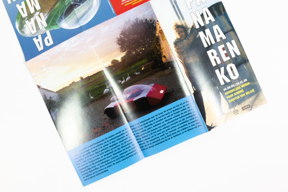 A poster / fold folder by Panamarenko from 2005-2006 for his exhibition in the Royal Museum of Fine Arts of Belgium.