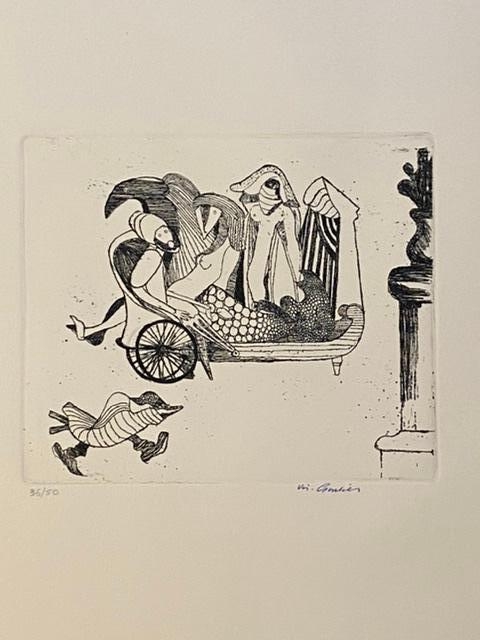 Very nice etching by the Belgian artist Vic Gentils. Matching with the etching is printed on both sides. The etching is loose. Signed and numbered by hand. Perfect condition. Number 36 of 50 ex