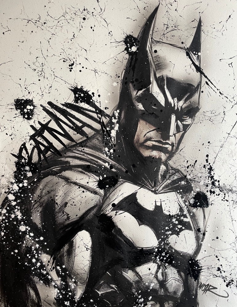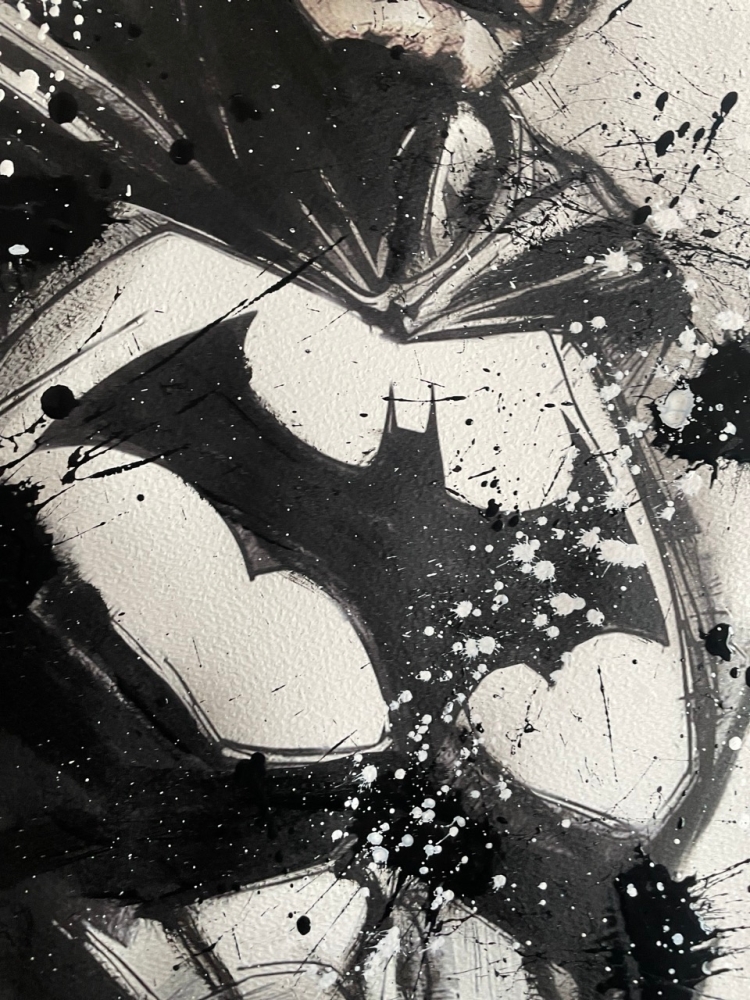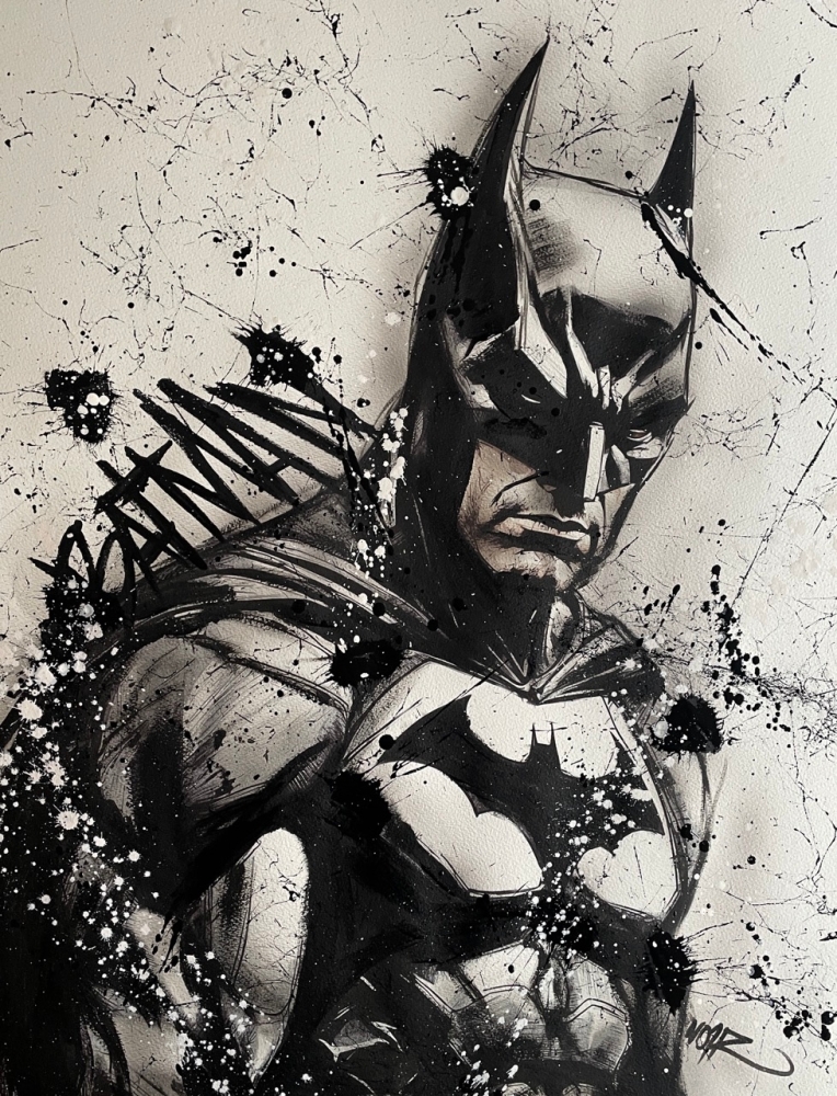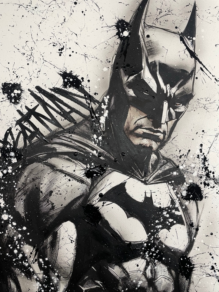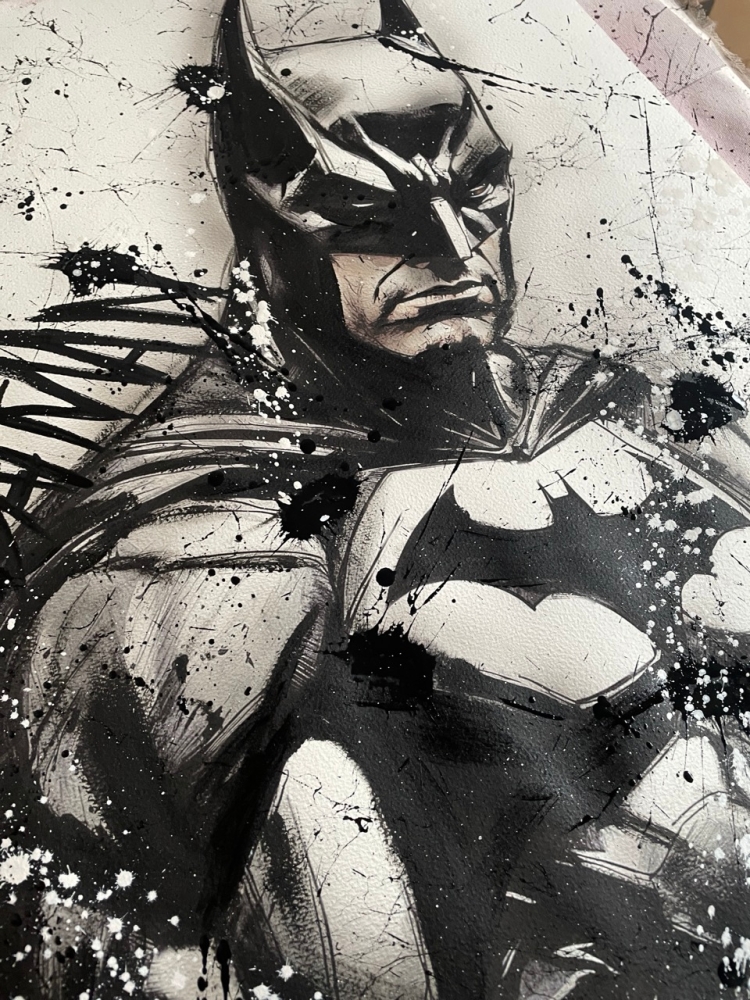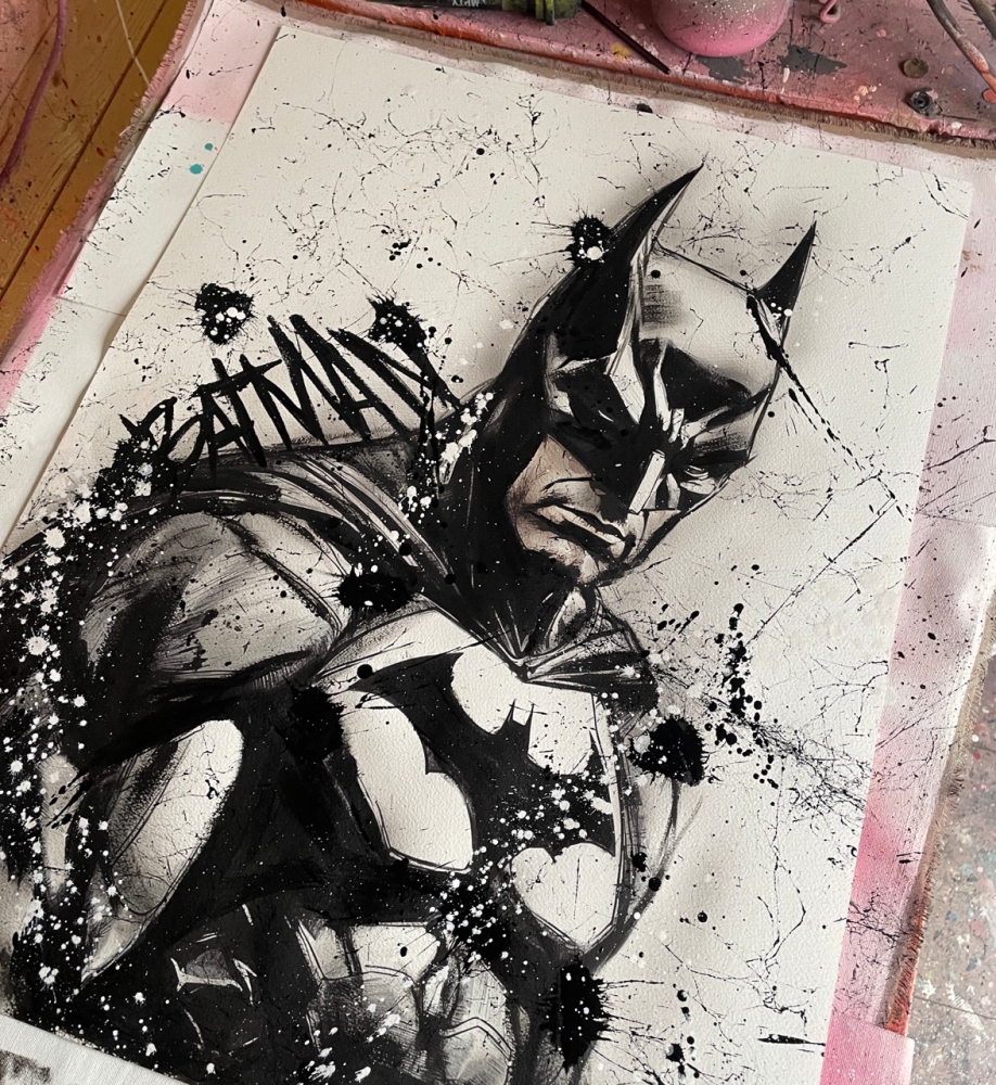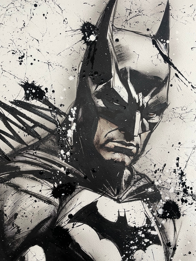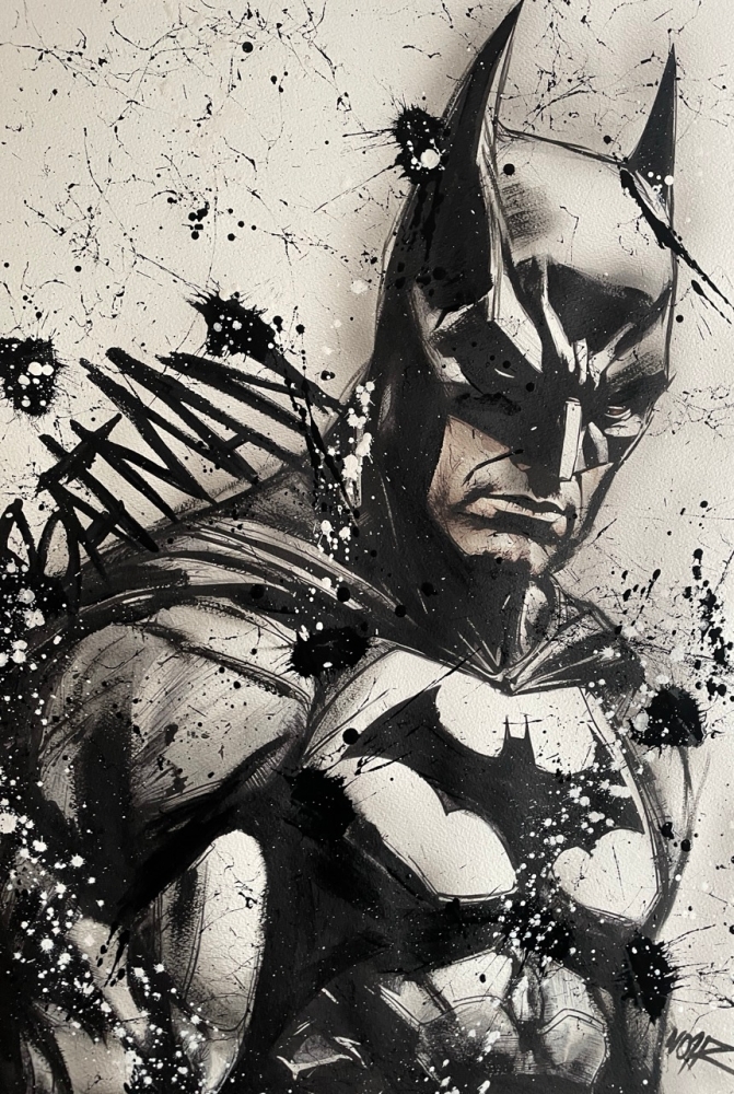 COLLECTOR'S ITEM! "The Batman" Introducing an exceptional interpretation of this Noir's piece, this artwork is a mixed media on paper titled "The Batman" This exclusive edition highlights the artist's passion In every stroke, Noir's work reflects an unwavering commitment to the art form. -This is a unique work of art, hand-signed and with a certificate of authenticity, delivered to your door. -This is a Mixed Media Artwork on paper, so you should expect some flaws, imperfections splatters, small cracks or wrinkles can also happen, and when it does, it's part of the artwork, this is just the nature of the spray on paper. -Sent rolled in a tube. -Colors may shift due light conditions at the moment of the photo. *do not leave it in the tube. Noir, a passionate artist, discovered her deep-seated love for Urban art and Illustration from a tender age. Over the years, Noir's artistic journey has unfurled, expanding the skills into various creative realms, including concept art and digital painting, music, 3d sculpt and traditional painting. With an unbridled fervor for the diverse world of art, and armed with a background in visual arts, Noir's work reflects an unwavering commitment to the art form. Exploring Noir's portfolio is an invitation to enter a realm where imagination knows no bounds