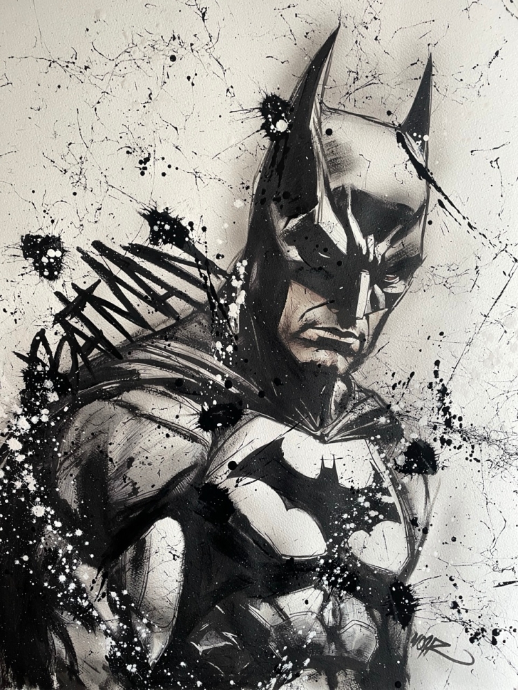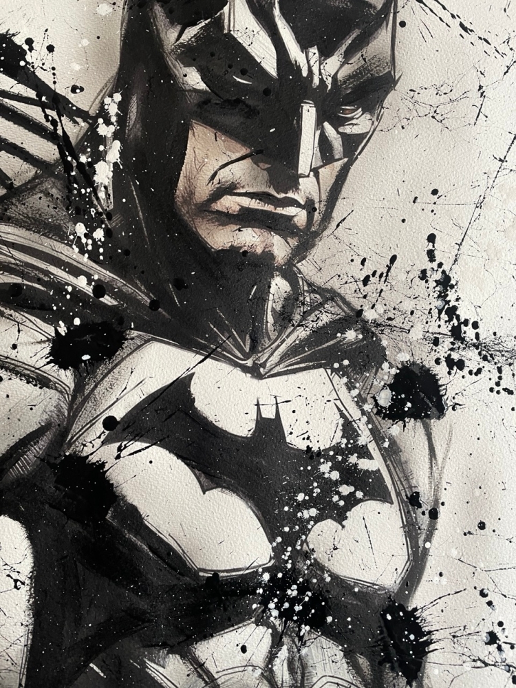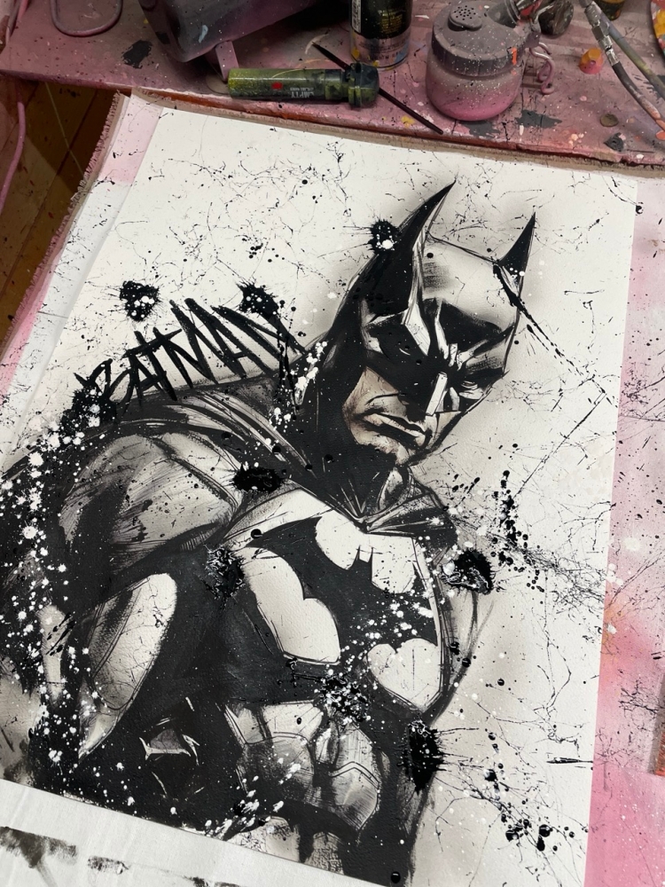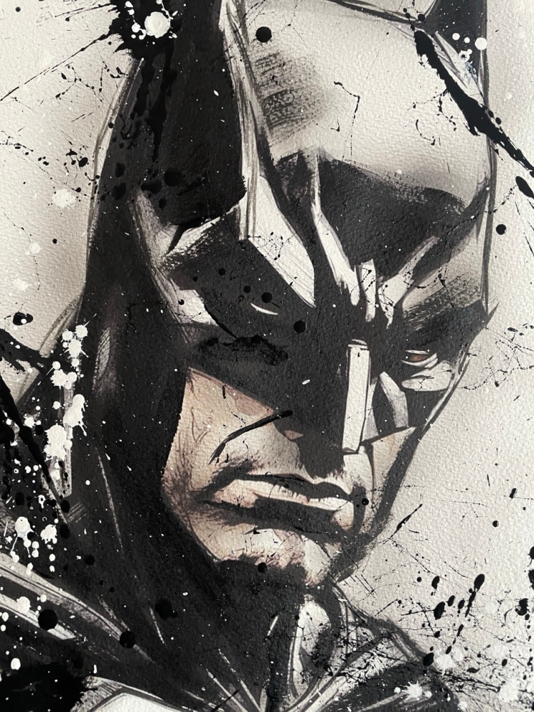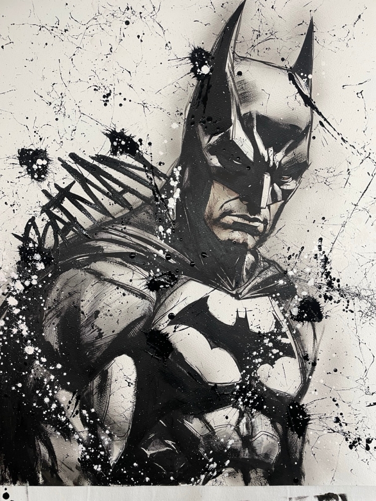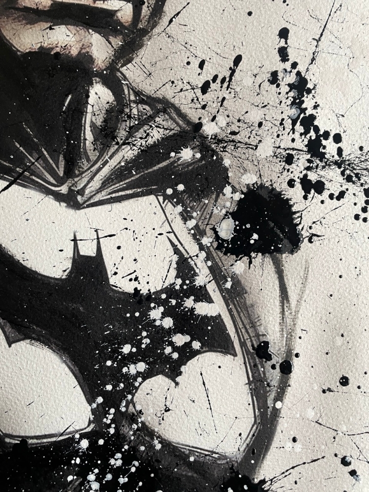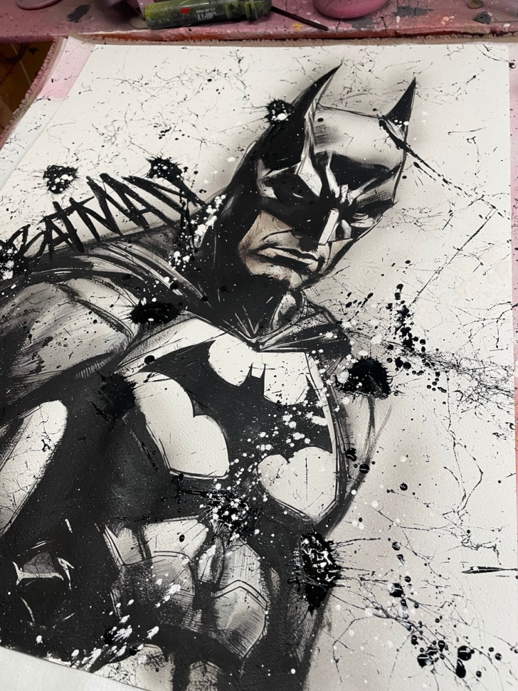 COLLECTOR'S ITEM! "The Batman" Introducing an exceptional interpretation of this Noir's piece, this artwork is a mixed media on paper titled "The Batman" This exclusive edition highlights the artist's passion In every stroke, Noir's work reflects an unwavering commitment to the art form. -This is a unique work of art, hand-signed and with a certificate of authenticity, delivered to your door. -This is a Mixed Media Artwork on paper, so you should expect some flaws, imperfections splatters, small cracks or wrinkles can also happen, and when it does, it's part of the artwork, this is just the nature of the spray on paper. -Sent rolled in a tube. -Colors may shift due light conditions at the moment of the photo. *do not leave it in the tube. Noir, a passionate artist, discovered her deep-seated love for Urban art and Illustration from a tender age. Over the years, Noir's artistic journey has unfurled, expanding the skills into various creative realms, including concept art and digital painting, music, 3d sculpt and traditional painting. With an unbridled fervor for the diverse world of art, and armed with a background in visual arts, Noir's work reflects an unwavering commitment to the art form. Exploring Noir's portfolio is an invitation to enter a realm where imagination knows no bounds