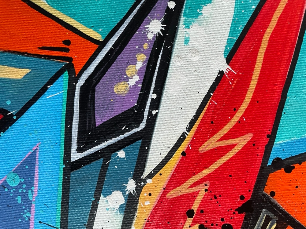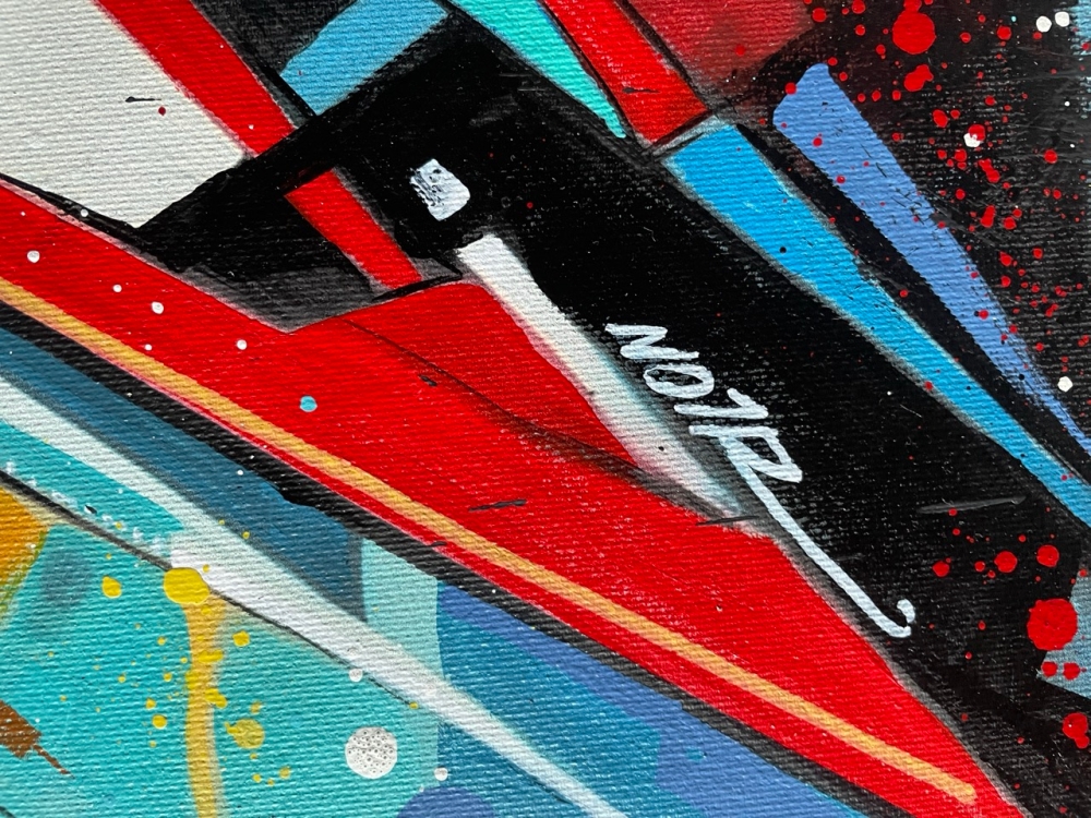 COLLECTOR'S ITEM! "Nitrox" Introducing an exceptional interpretation of this Noir's piece, this artwork is a mixed media on canvas titled "Nitrox" This exclusive edition highlights the artist's passion In every stroke, Noir's work reflects an unwavering commitment to the art form. -This is a unique work of art, hand-signed and with a certificate of authenticity, delivered to your door. -Sent rolled in a tube. -This is a Mixed Media Artwork on canvas, so you should expect some flaws, imperfections splatters, small cracks or wrinkles can also happen, and when it does, it's part of the artwork. This is just the nature of the spray on canvas. -Sent rolled in a tube. -Colors may shift due light conditions at the moment of the photo. *do not leave it in the tube Noir, a passionate artist, discovered her deep-seated love for Urban art and Illustration from a tender age. Over the years, Noir's artistic journey has unfurled, expanding the skills into various creative realms, including concept art and digital painting, music, 3d sculpt and traditional painting. With an unbridled fervor for the diverse world of art, and armed with a background in visual arts, Noir's work reflects an unwavering commitment to the art form. Exploring Noir's portfolio is an invitation to enter a realm where imagination knows no bounds