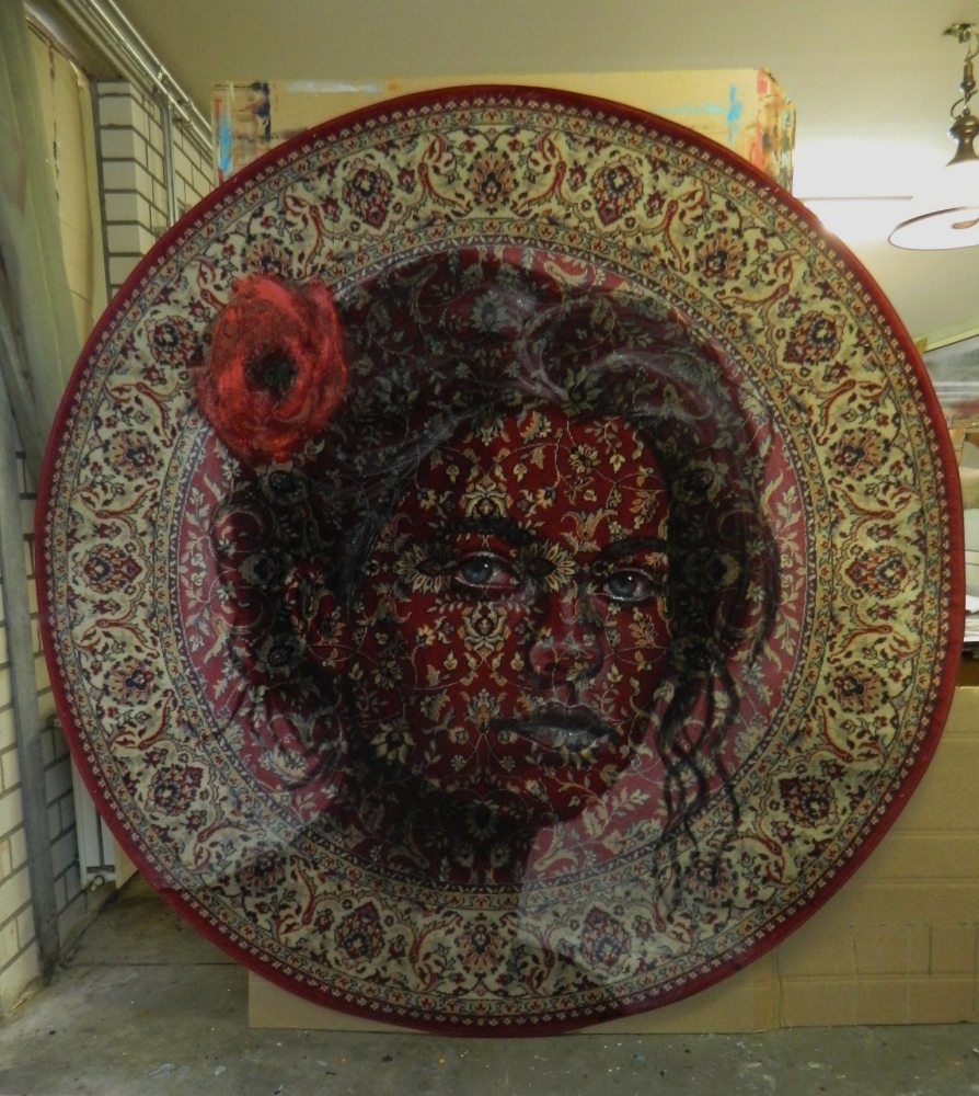 A portrait of Rose, painted on a vintage, round carpet. Jacqueline Klein Breteler is a Dutch artist with a studio in a small, rural village in the Netherlands, where she lives with her husband and five sons. Her works have been exhibited in many places and art collectors all over the world purchase her work. Currently available at: Sille Gallery in Oudewater, Royals and rebels art in Vught and Artfusion in Amsterdam, and many more places. https://www.artsy.net/artist/jacqueline-klein-breteler Insta: @jacqkunst Website: exto.nl The art will be carefully packaged and shipped with track and trace.