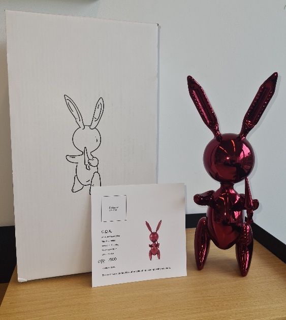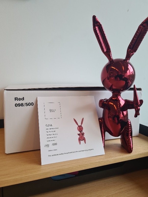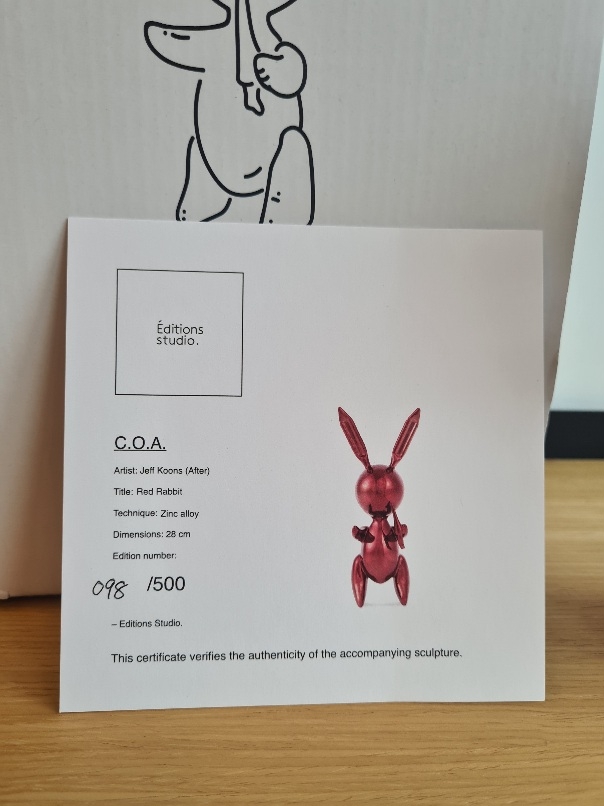 Limited Balloon Rabbit Red -Jeff Koons(After) Editions Studio, - Balloon rabbit (Red) - Limited edition of 500 - Material : Zinc alloy - Height: 33 cm / 13 in - Weight: 3 kg Limited edition Uniek nummer op de doos Komt met origineel Certificate of Authenticity issued by the Editions Studio :