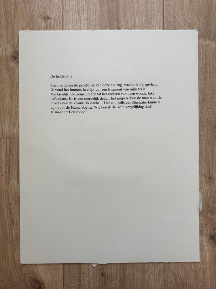Very nice etching by the Belgian artist Vic Gentils. Matching with the etching is printed on both sides. The etching is loose. Signed and numbered by hand. Perfect condition. Number 36 of 50 ex