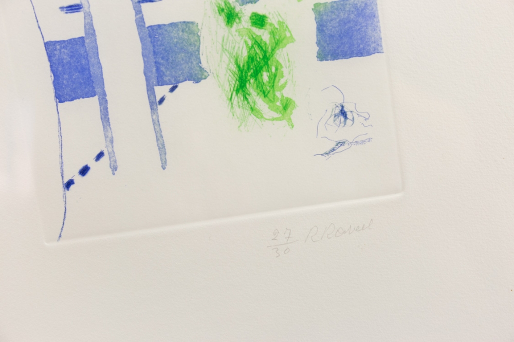 Color etchings signed numbered in a very small edition of 30 copies. Printing workshop Piet Clement, Amsterdam. This work is professionally framed. With certificate of authenticity issued by the gallery of Roger Raveel (ART-Gallery.be). The work and the frame are in perfect condition.