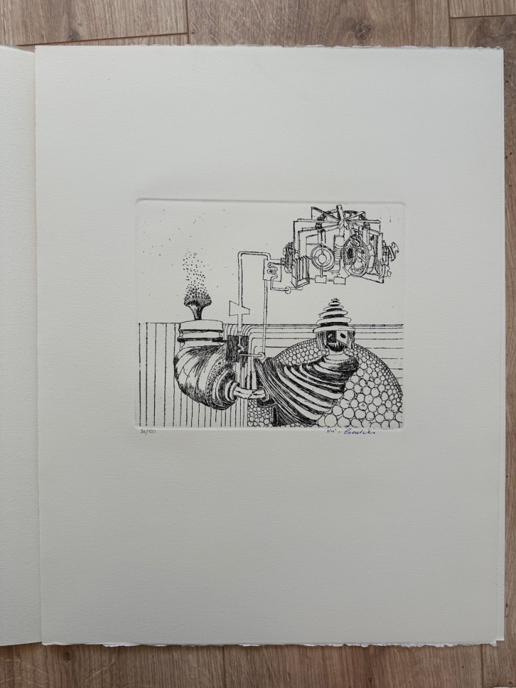 Very nice etching by the Belgian artist Vic Gentils. Matching with the etching is printed on both sides. The etching is loose. Signed and numbered by hand. Perfect condition. Number 36 of 50 ex