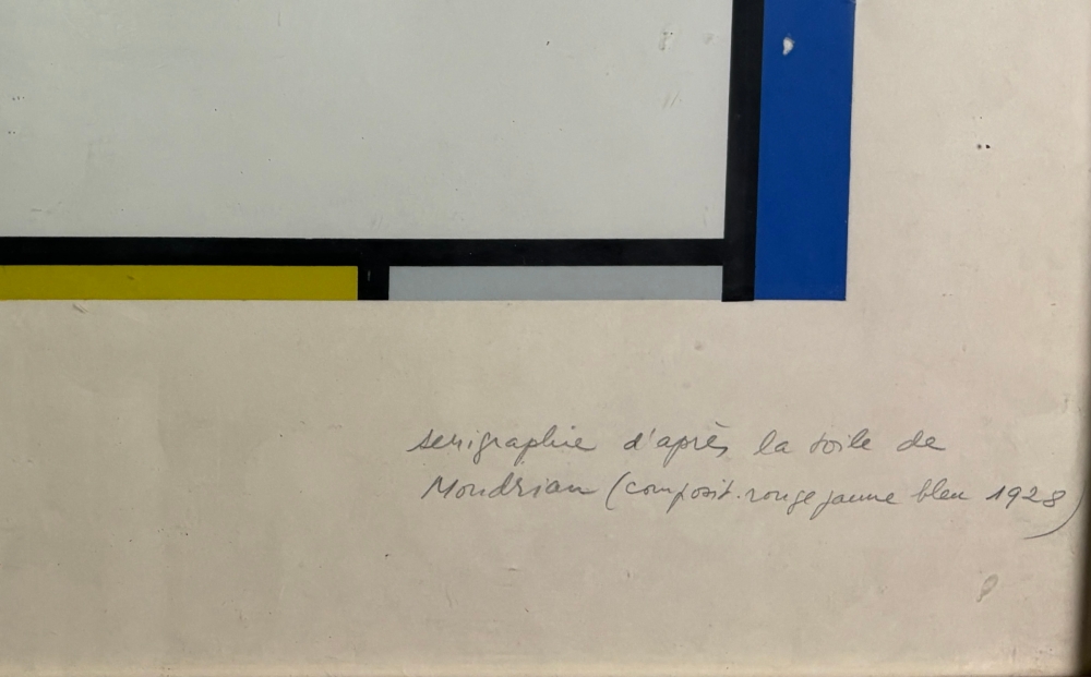 Silkscreen edition of 200 copies after the work of Piet Mondriaan 'Composition Rouge Jaune Bleu, 1928' Copy number 7/200. With handwritten annotation. In frame. Insured shipping and collection possible.