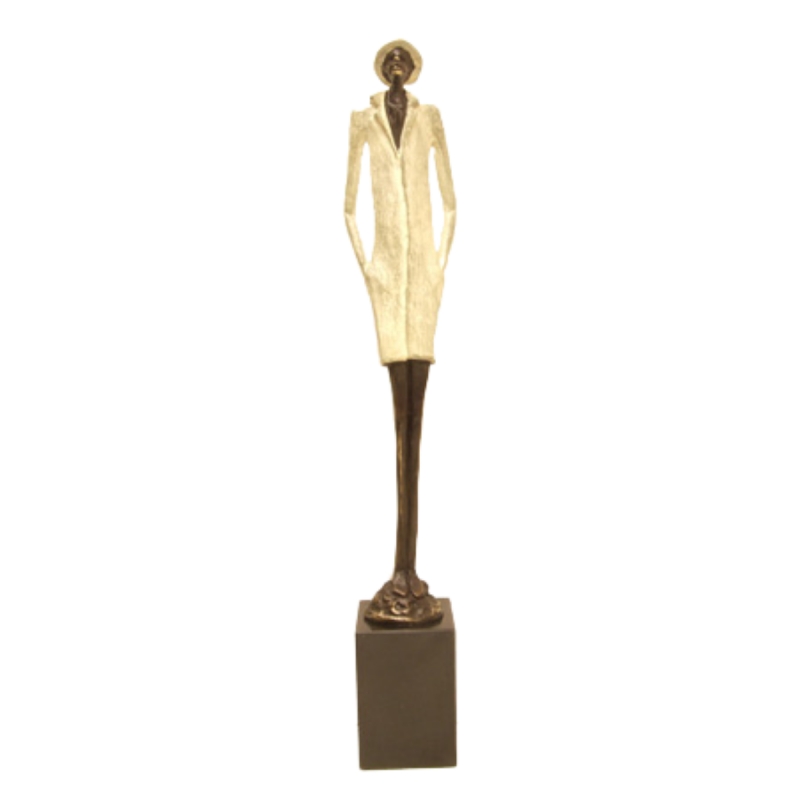 Prachtig beeld op marmeren voet. Het beeld is (inclusief marmeren sokkel) 45 cm hoog. Het beeld is in nieuwstaat. Het beeld is gemaakt van een tinlegering en vervolgens verbronsd. GER VAN TANKEREN (1937) is autodidact. Toen de vraag naar zijn kunstharsbeelden begon af te nemen, stapte hij over op het gieten van beelden in een tinlegering, die hij vervolgens verbronste. Ger staat bekend om zijn veelzijdigheid en oog voor detail. Hij maakte afbeeldingen van zeer realistische beelden tot artistieke en religieuze taferelen. Ger bleef tot zijn 82e actief met het maken van diverse modellen, die niet alleen geschikt zijn voor in de woonkamer, maar ook als relatiegeschenk kunnen dienen en goed tot hun recht komen op kantoor of woonkamer. Dit sculptuur is voorzien van een witte patinalaag.