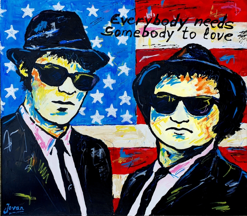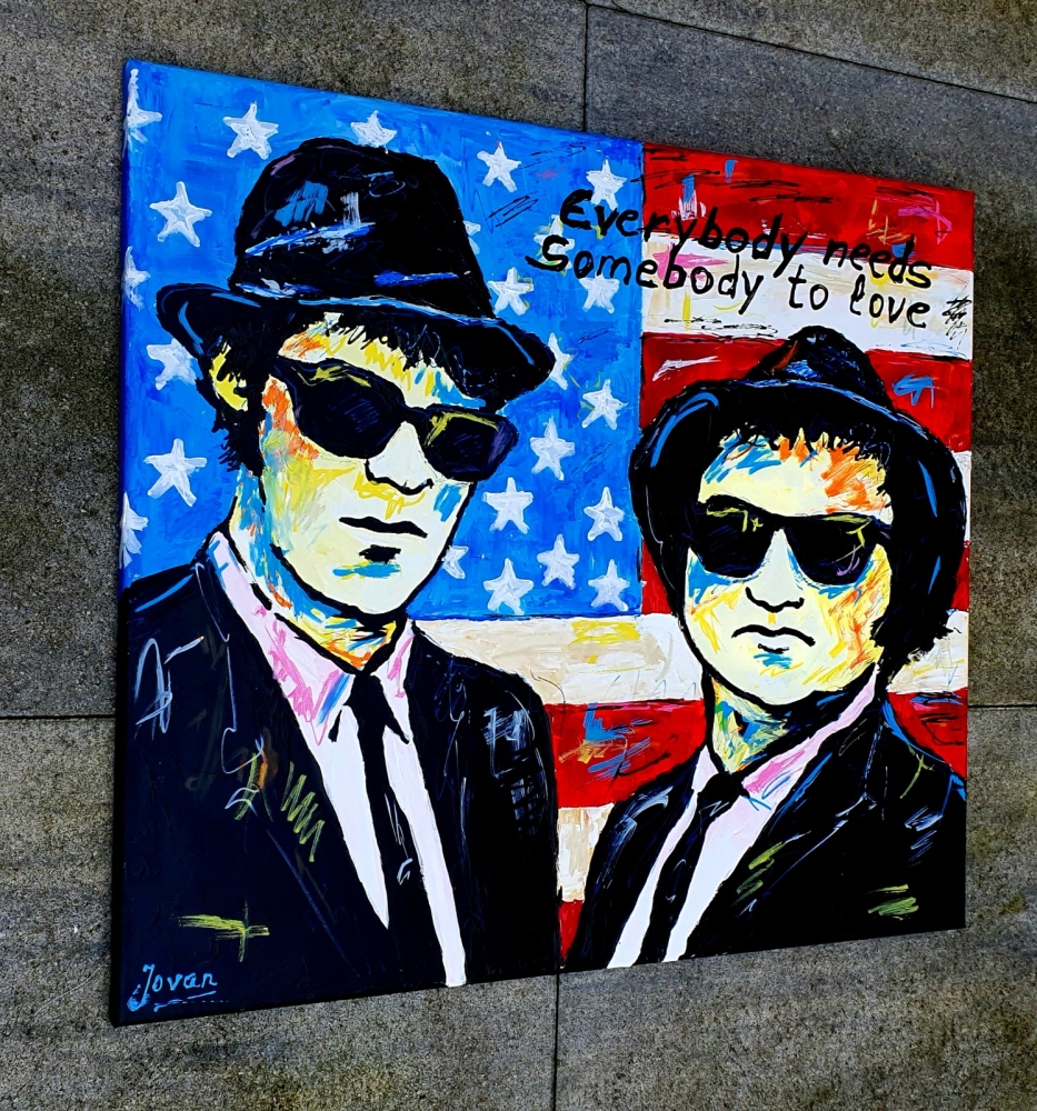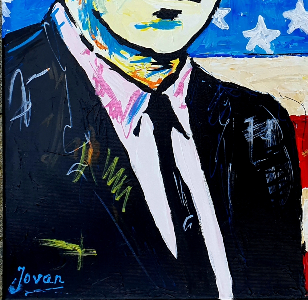 Uniek werk, uit een serie schilderijen ''R & R forever''in Street/Pop art stijl, van de Nederlandse professionele / hedendaagse kunstenaar Jovan Srijemac (1962). Werk is geschilderd met acrylverf acryl marker, sprei,. Schilderij is met de hand gesigneerd, met certificaat van echtheid, is gelakt en klaar om op te hangen. De zijkanten zijn geschilderd als onderdeel van het schilderij en hoeven niet te worden ingelijst. Dit werk past goed in een modern interieur of kantoorruimte. "De chaos van ideeën die in mijn hoofd zijn ontstaan, het innerlijk verstoken van energie, wil als een vulkaan naar buiten komen en zo een explosie worden en een symfonie van kleuren op het doek, omlijst met materie, figuren, gezichten of abstracte compositie" . Mijn werk ligt dicht bij de expressionistische stijl, maar ik experimenteer graag met pop-art en action painting. Mijn werk uit de jaren tachtig was surrealistisch. Ik wilde een bericht sturen naar de kijkers. Het hoofdthema ging over het leven in de wereld, tegen de oorlog. In de jaren 90 was mijn werk somber, donker van kleur, net als mijn gevoelens. Ik ben begin jaren negentig uit mijn land (voormalig Joegoslavië) ontsnapt toen de oorlog uitbrak. In de jaren '00 was ik op zoek naar kleur. eindelijk gelukt tot nu toe. Mijn werk is nu kleurrijk, abstract expressionistisch. Het meeste werk is geschilderd met een paletmes. Er is kleur op het doek aangebracht met een gevoel en emotie die diep uit mijn ziel komt. Thema is minder belangrijk als ik tevreden ben met de compositie en kleur. Experimenteren in de kunst, met stijlen, technieken, kleuren etc, vind ik erg belangrijk. Ik denk: "Als je als artiest je hele leven vasthoudt aan één stijl, dan ben je als artiest dood." In de kunst en in het leven is er voor mij één doel: doorgaan! En ik zeg vaak: "We weten pas wat er achter de gesloten deur verborgen zit als we hem openen" Citaat uit mijn boek: ''Apocalypse of the soul''