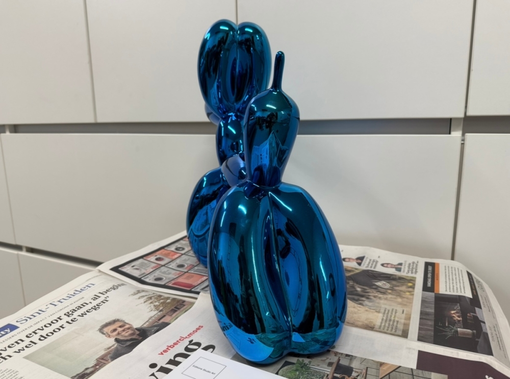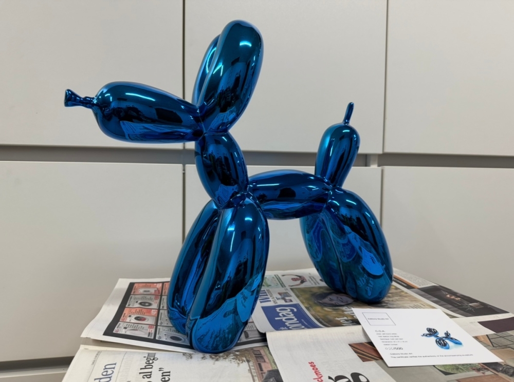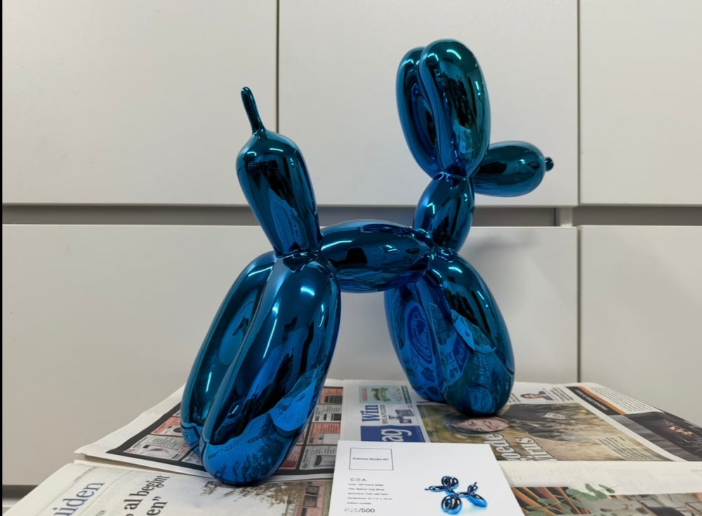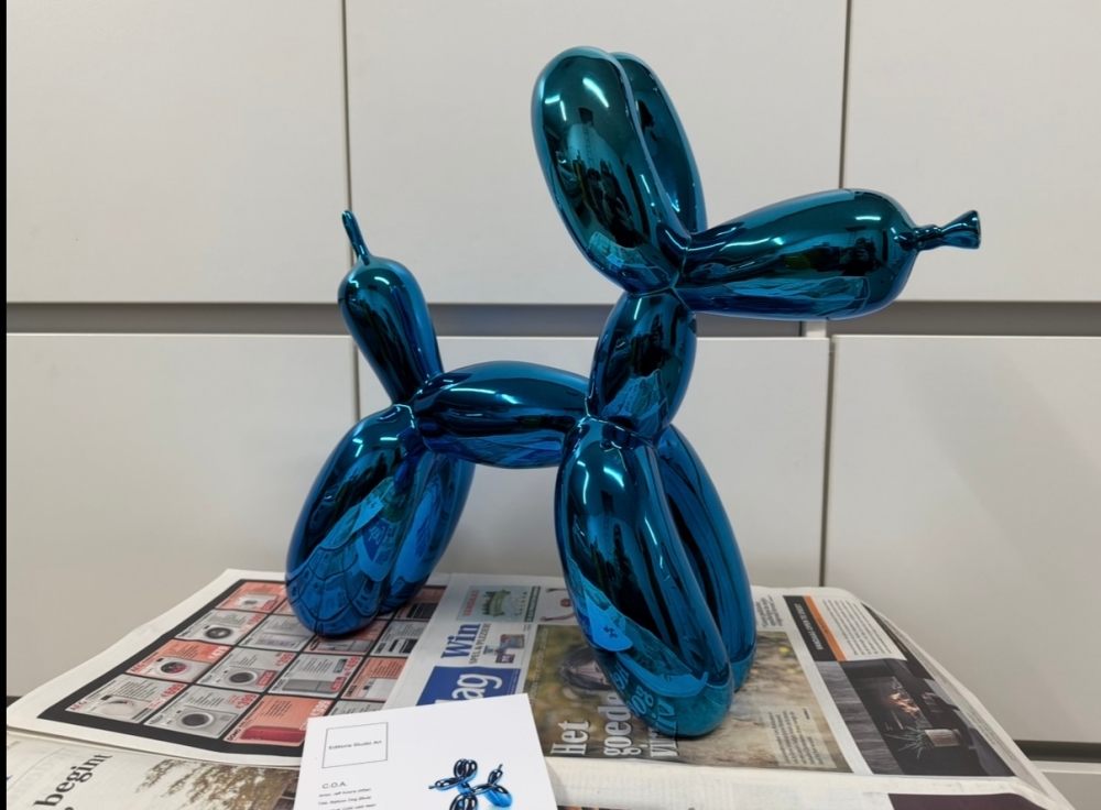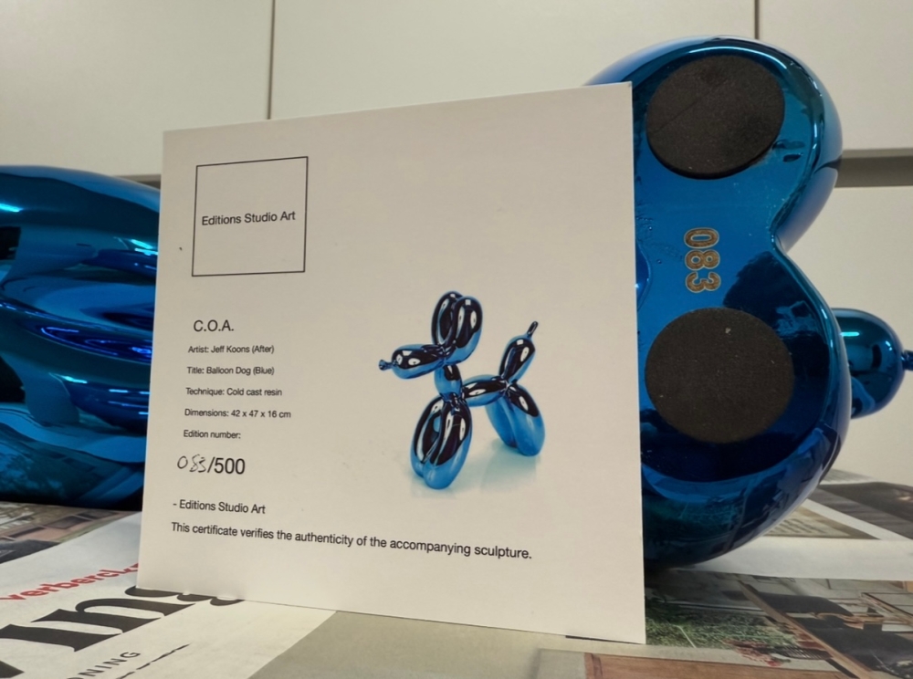 Resin sculpture after Jeff Koons, published by Éditions Studio. Very rare XXL version of the first edition. Edition very limited to 500 pieces, of which this number is 083. The sculpture comes without the original packaging but is accompanied by the original certificate. The box is not included due water damage. Sculpture is in good to very good condition. Blue is hard to find bevause it was sold out in only few minutes after the release many years ago. Private collection sale. 100% authentic.