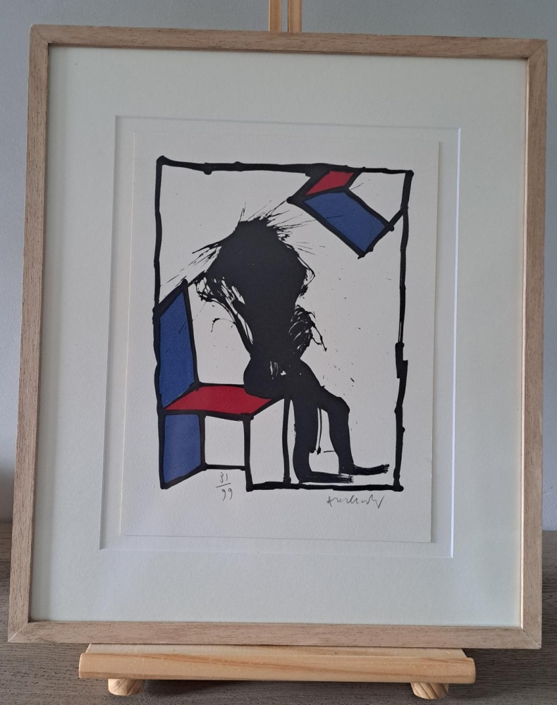 Typical lithograph by Pierre Alechinsky from 1988. signed and numbered in pencil. this is number 31/99 Printed by Clot Bramsen on Arches and published by La Différence. new professional floating frame with acid-free passepartout, anti-reflective glass and natural wood frame
