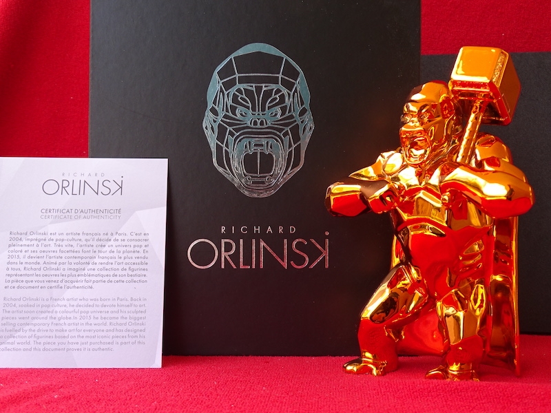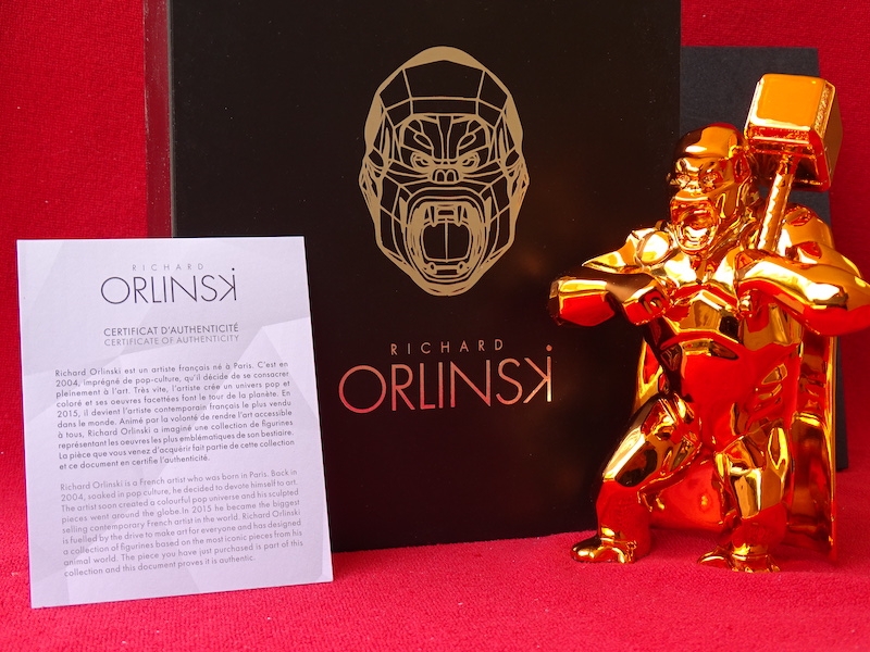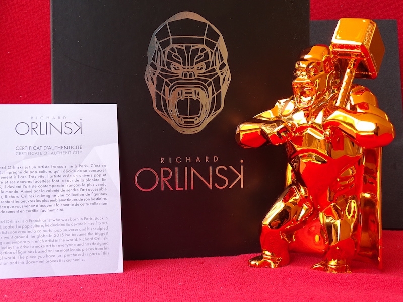 Richard Orlinski with Certificate of Authenticity I auction this creation by Richard Orlinski, a world-renowned contemporary artist. This piece comes from a (very) limited edition, SOLD OUT in a few minutes. This Silver Kong has never been taken out of its case, and is of course put back under blister, with its original box and certificate of authenticity. 13.5 x 7.5 x 4 cm In mint condition. Richard Orlinski is the worldwide best-selling contemporary French artist and is part of the very closed circle of the contemporary artists like Koons, Hirst and Cattelan. His sculptures, revolving around the Born wild concept, are the result of a profound reflection on animal instinct and human nature. Curious about nature and eager to express his sensitivity through other artistic disciplines, he discovered a passion for music. Orlinski is a reference in contemporary art on par with her friends and colleagues such as Shepard Fairey (Obey), C215, Jef Aérosol, JR, Swoon, Vhils, Felipe Pantone, Denial, , Banksy, Invader, Basquiat, Hirst, Lichtenstein, M.Chat, Sandra Chevrier, Stik, André Saraiva, Koons, Haring, Imbue, JonOne, Arsham, Stik, M. Brainwash, Kaws, Seth, etc... Carefully packed tracked worldwide shipment.