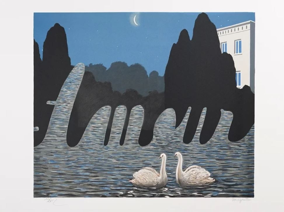Color lithograph after the work of the same name by René MAGRITTE. Signed with name stamp and signature of Charly Herscovici Numbered on 275 copies and with blind stamp "Succesion Magritte" and blind stamp "ADAGP Paris 2011" Top dimensions (hxw): 60 x 45 cm Frame dimensions: 72 x 58.5 cm Published in Paris in 2011 with the approval and under the control of the ADAGP Paris which manages the Magritte estate and with the signature of its representative Charly Herscovici Proof of edition is printed on the back of the lithograph and visible in the new professional framing.